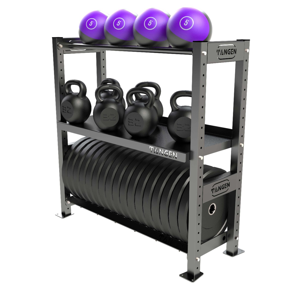 Комплектация: полка для гантелей, полка для мячей, полка для дисков.