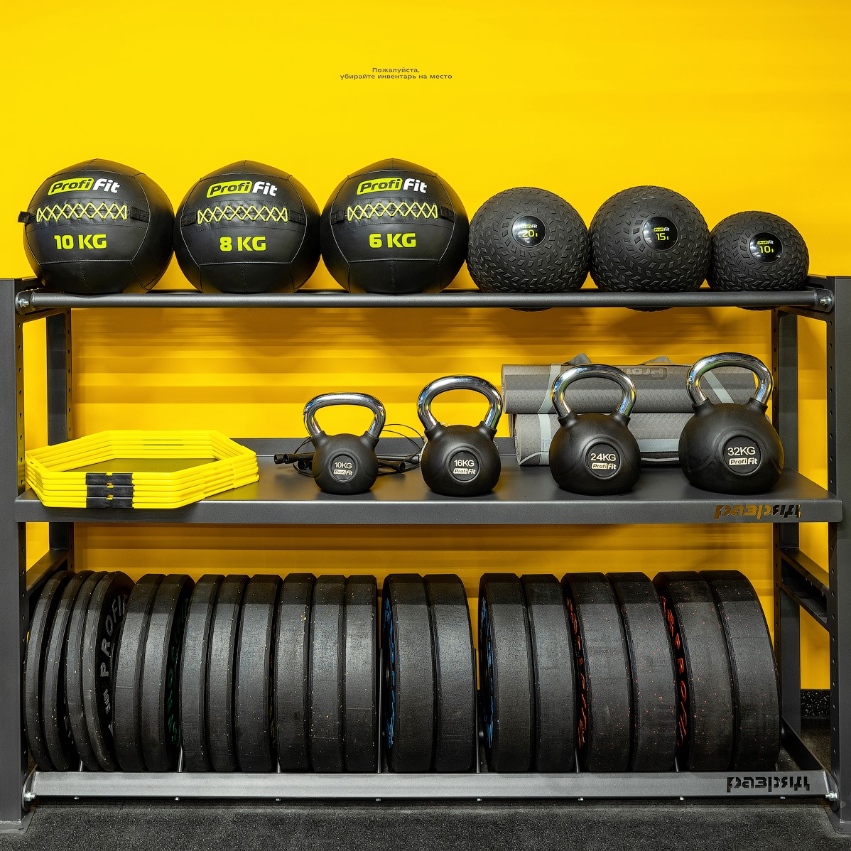 Комплектация: полка для гирь, полка для мячей, полка для дисков.