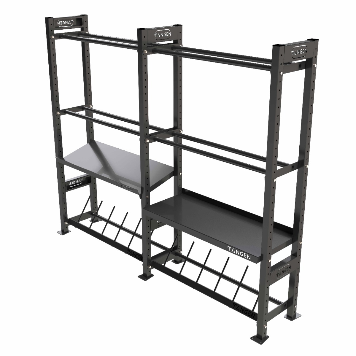 Комплектация: полка для гантелей, полка для мячей, полка для дисков, полка для гирь.