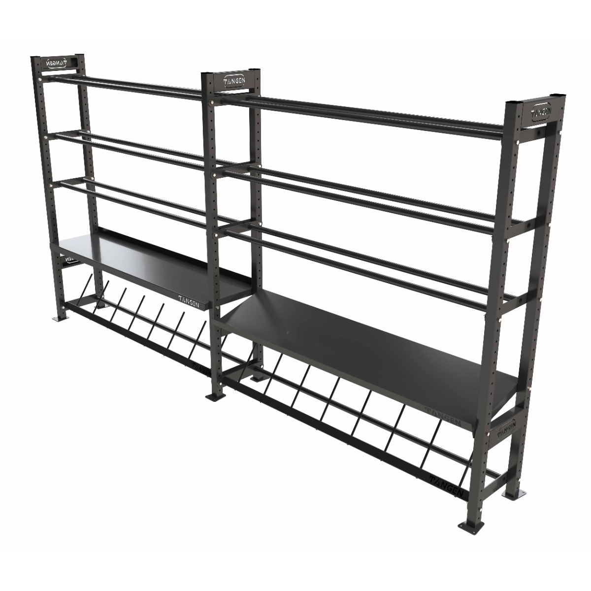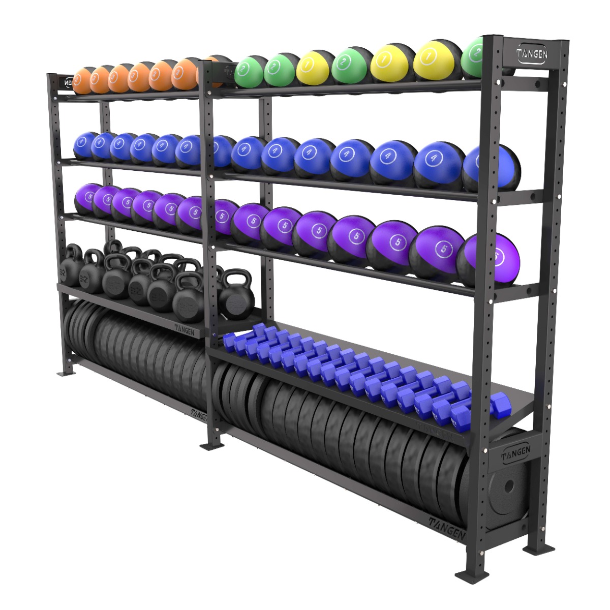 Комплектация: полка для гантелей, полка для мячей, полка для дисков, полка для гирь.