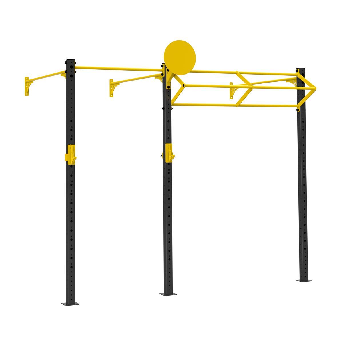 А0310 Функциональная рама 2900-1800 .Функциональная рама для кроссфита – неотъемлемый атрибут любого crossfit-зала, универсальное решение необходимое для проведения комплексных тренировок и выполнения силовых упражнений.Основные элементы рамы выполнены из профильной трубы 80*80*3 мм,трубы d32 мм и листов металла 8 и 10 мм. Состав:Стойка перфорированная 80х80, ZSO-2680- 3 шт Перекладина одинарная УСИЛЕННАЯ d32, ZSO-1800-3 шт Перекладина одинарная d32, ZSO-1100-1 шт Перекладина треугольная d32/32/32, ZSO-1800 -1 шт Мишень для медбола, ZSO -1 шт Крюки для штанги, ZSO, (пара)- 1 шт