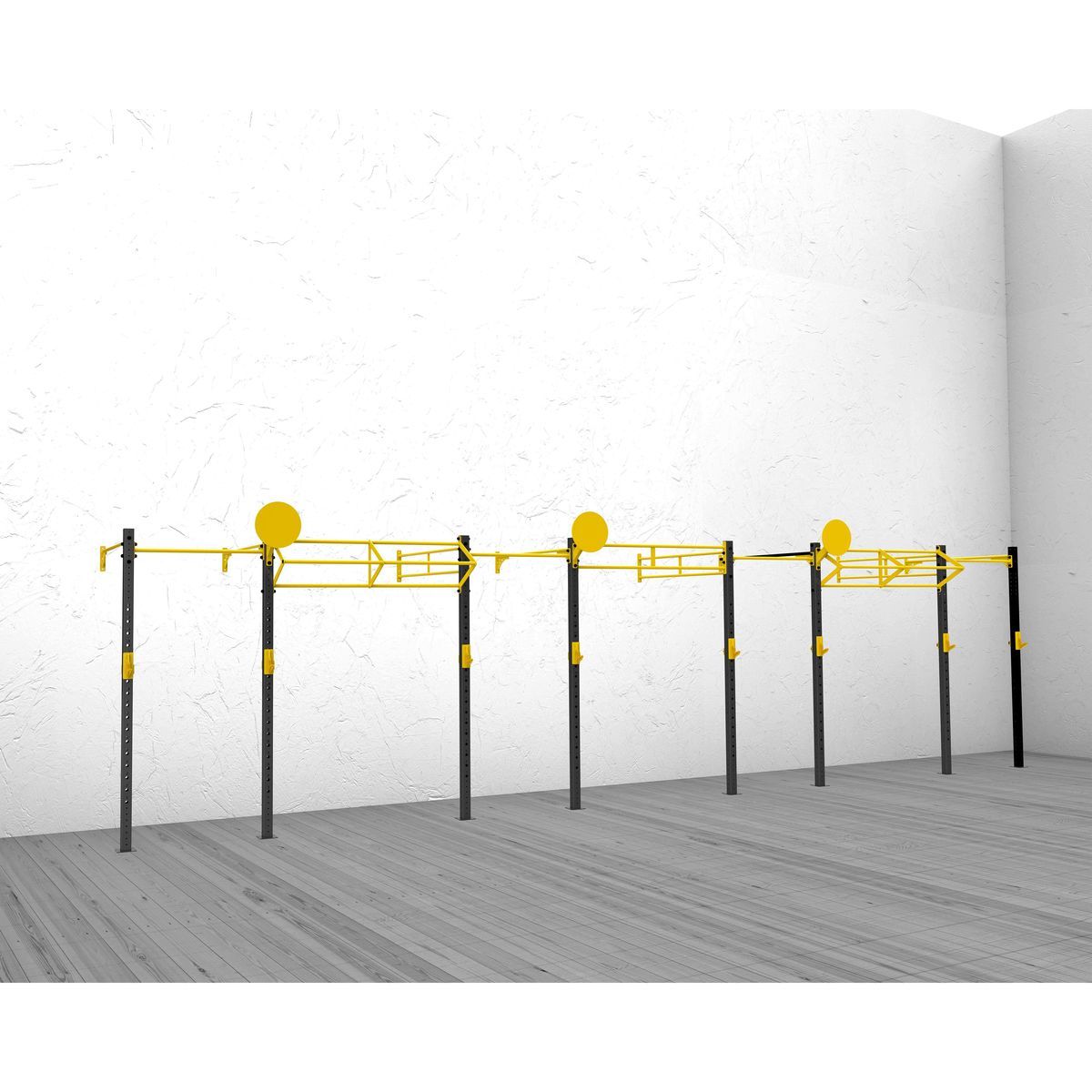 А0315 Функциональная рама 9800-1800.Функциональная рама для кроссфита – неотъемлемый атрибут любого crossfit-зала, универсальное решение необходимое для проведения комплексных тренировок и выполнения силовых упражнений.Основные элементы рамы выполнены из профильной трубы 80*80*3 мм,трубы d32 мм и листов металла 8 и 10 мм. Состав:Стойка перфорированная 80х80, ZSO-2680 -8 шт Перекладина одинарная УСИЛЕННАЯ d32, ZSO-1800 -4 шт Перекладина двойная d32, ZSO-1800 -5 шт Перекладина одинарная d32, ZSO-1100 -4 шт Перекладина треугольная d32/32/32, ZSO-1800 -2 шт Мишень для медбола, ZSO -3 шт Крюки для штанги, ZSO, (пара)- 4 шт