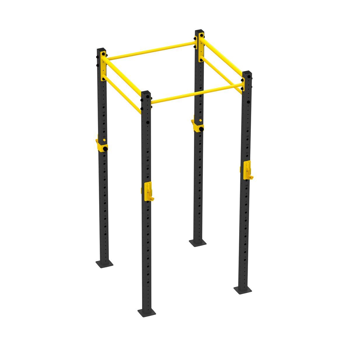 А0324 Функциональная рама 1100-1100.Функциональная рама для кроссфита – неотъемлемый атрибут любого crossfit-зала, универсальное решение необходимое для проведения комплексных тренировок и выполнения силовых упражнений.Основные элементы рамы выполнены из профильной трубы 80*80*3 мм,трубы d32 мм и листов металла 8 и 10 мм. Состав:Стойка перфорированная 80х80, ZSO-2680 - 4 шт Перекладина двойная d32/48, ZSO-1100- 2 шт Перекладина одинарная d32, ZSO-1100 - 2 шт Крюки для штанги, ZSO, (пара)- 2 шт