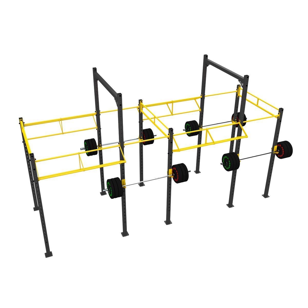 А0329 Функциональная рама 5800-1800.Функциональная рама для кроссфита – неотъемлемый атрибут любого crossfit-зала, универсальное решение необходимое для проведения комплексных тренировок и выполнения силовых упражнений.Основные элементы рамы выполнены из профильной трубы 80*80*3 мм,трубы d32 мм и листов металла 8 и 10 мм. Состав:Стойка перфорированная 80х80, ZSO-2680- 6 шт Стойка перфорированная 80х80, ZSO-3680 - 4 шт Балка перфорированная УСИЛЕННАЯ 80х80, ZSO-1800-2 шт Перекладина двойная d32, ZSO-1800 -3 шт Перекладина одинарная d32, ZSO-1100 -4 шт Перекладина треугольная d32/32/32, ZSO-1800 - 4 шт Крюки для штанги, ZSO, (пара)-4 шт