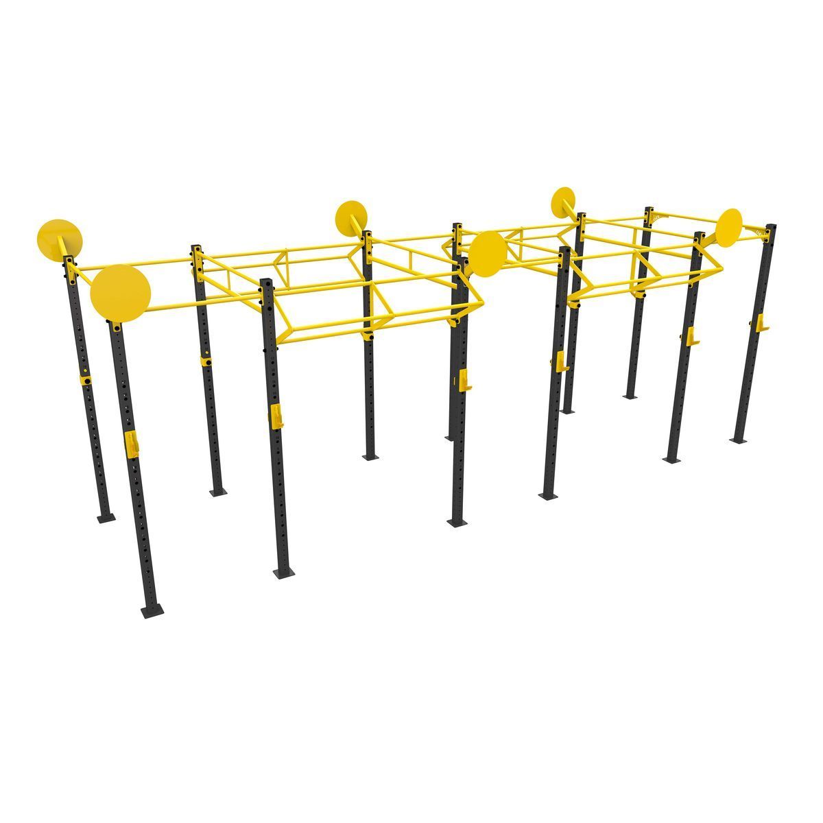 А0336 Функциональная рама 6900-1800.Функциональная рама для кроссфита – неотъемлемый атрибут любого crossfit-зала, универсальное решение необходимое для проведения комплексных тренировок и выполнения силовых упражнений.Основные элементы рамы выполнены из профильной трубы 80*80*3 мм,трубы d32 мм и листов металла 8 и 10 мм. Состав:Стойка перфорированная 80х80, ZSO-2680-12 шт Перекладина одинарная d32, ZSO-1100 -6 шт Перекладина треугольная d32/32/32, ZSO-1800 - 4 шт Перекладина двойная d32, ZSO-1800 - 4 шт Перекладина одинарная УСИЛЕННАЯ d32, ZSO-1800 - 2 шт Мишень для медбола, ZSO- 6 шт Крюки для штанги, ZSO, (пара) -6 шт
