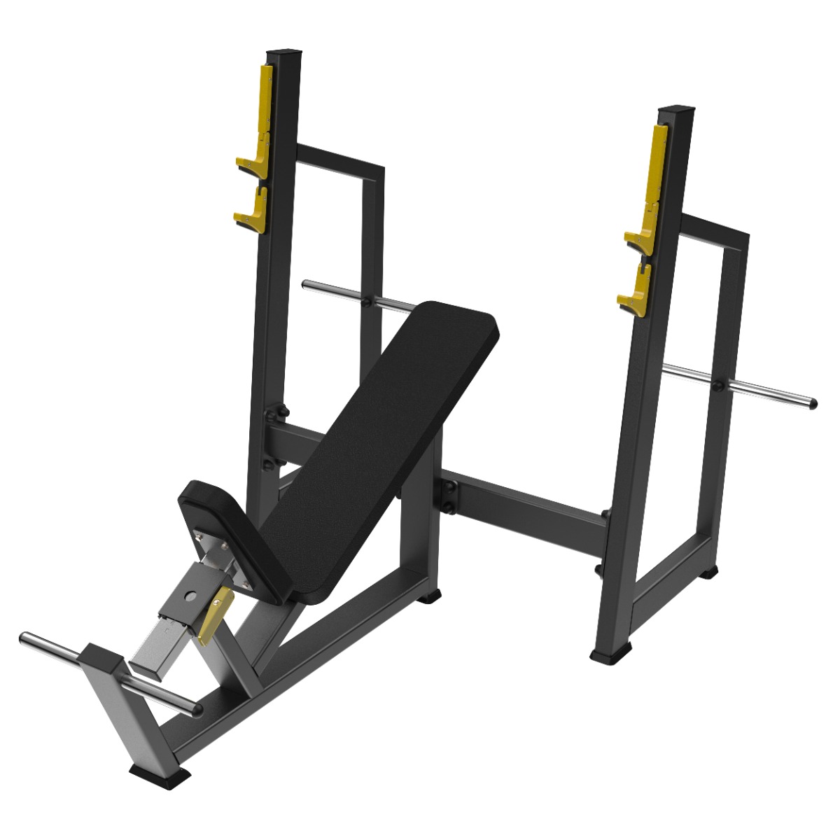 Профессиональный тренажёр для коммерческого использования A3042 Скамья-стойка для жима под углом вверх предназначен для выполнения жима штанги под углом 30° с акцентированной нагрузкой на верхнюю часть грудных и передние пучки дельтовидных мышц. Регулируемое сиденье и фиксирующие элементы обеспечивают комфорт, стабильность и безопасность при работе с большим весом.