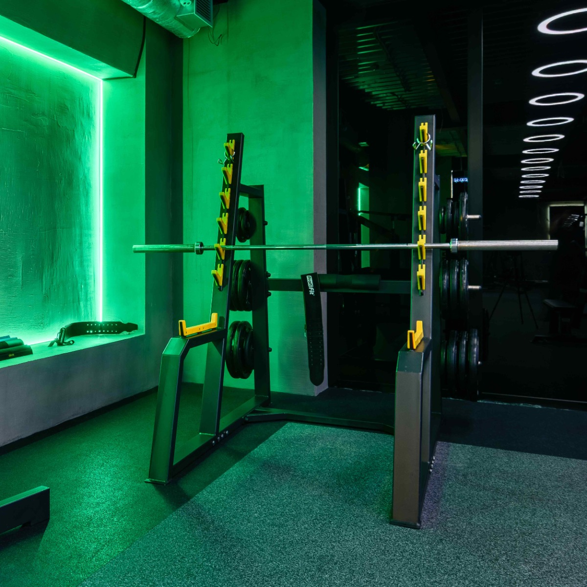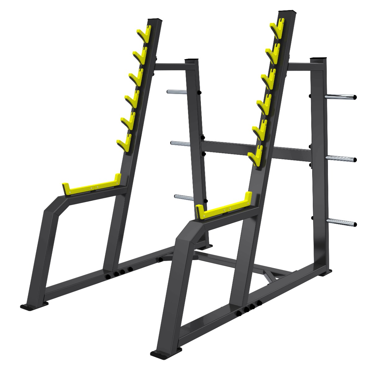 Профессиональный тренажёр для коммерческого использования A3050 Стойка для приседаний с ограничителями предназначен для безопасного выполнения приседаний со штангой и других упражнений со свободными весами. Конструкция стойки обеспечивает надёжную фиксацию грифа, защиту спортсмена при работе с большими нагрузками и удобное хранение дисков.