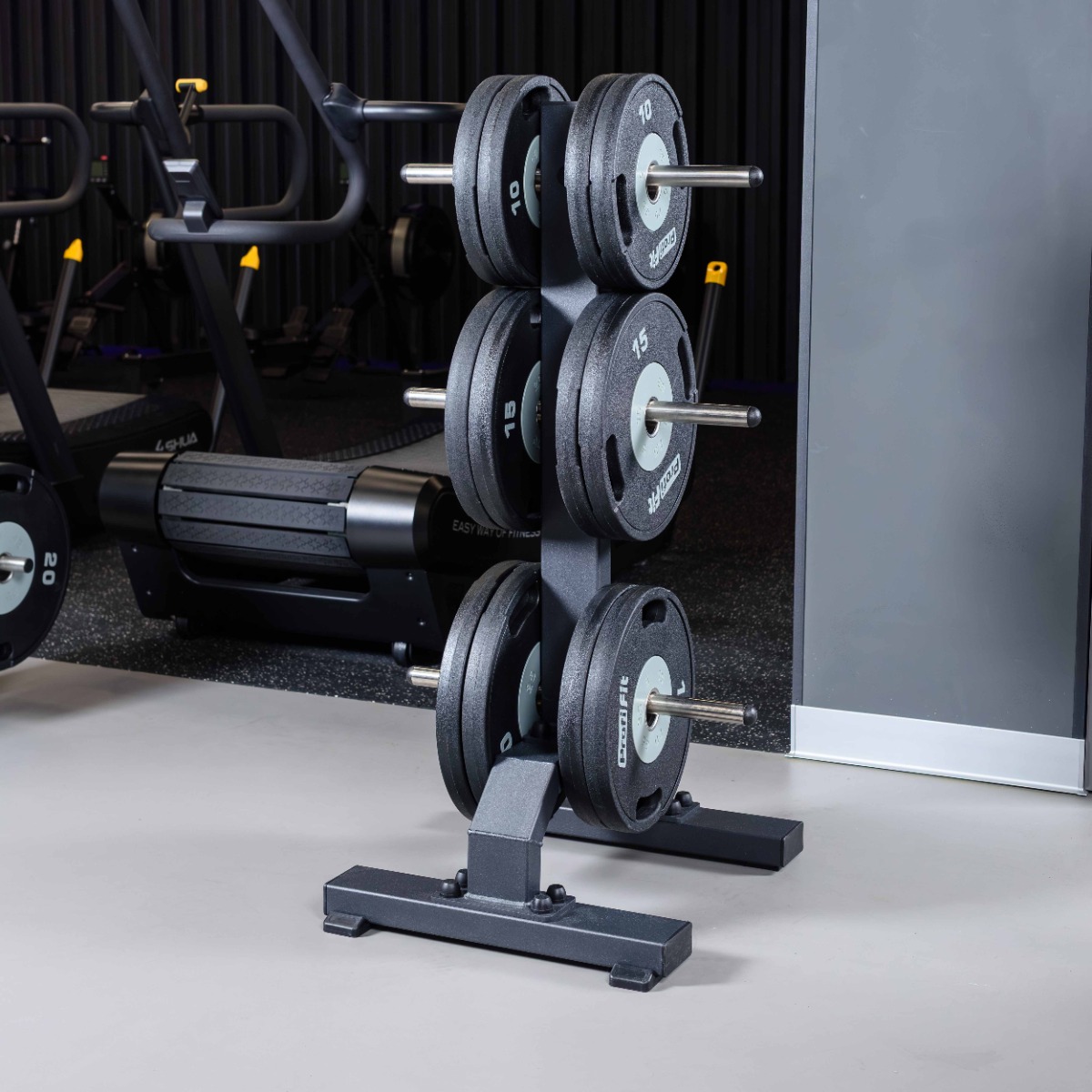 Профессиональная стойка для коммерческого использования A3054 Стойка для олимпийских дисков предназначена для компактного, безопасного и эргономичного хранения дисков с посадочным диаметром 50 мм. Конструкция обеспечивает удобный доступ к отягощениям и сохраняет порядок в зоне свободных весов.