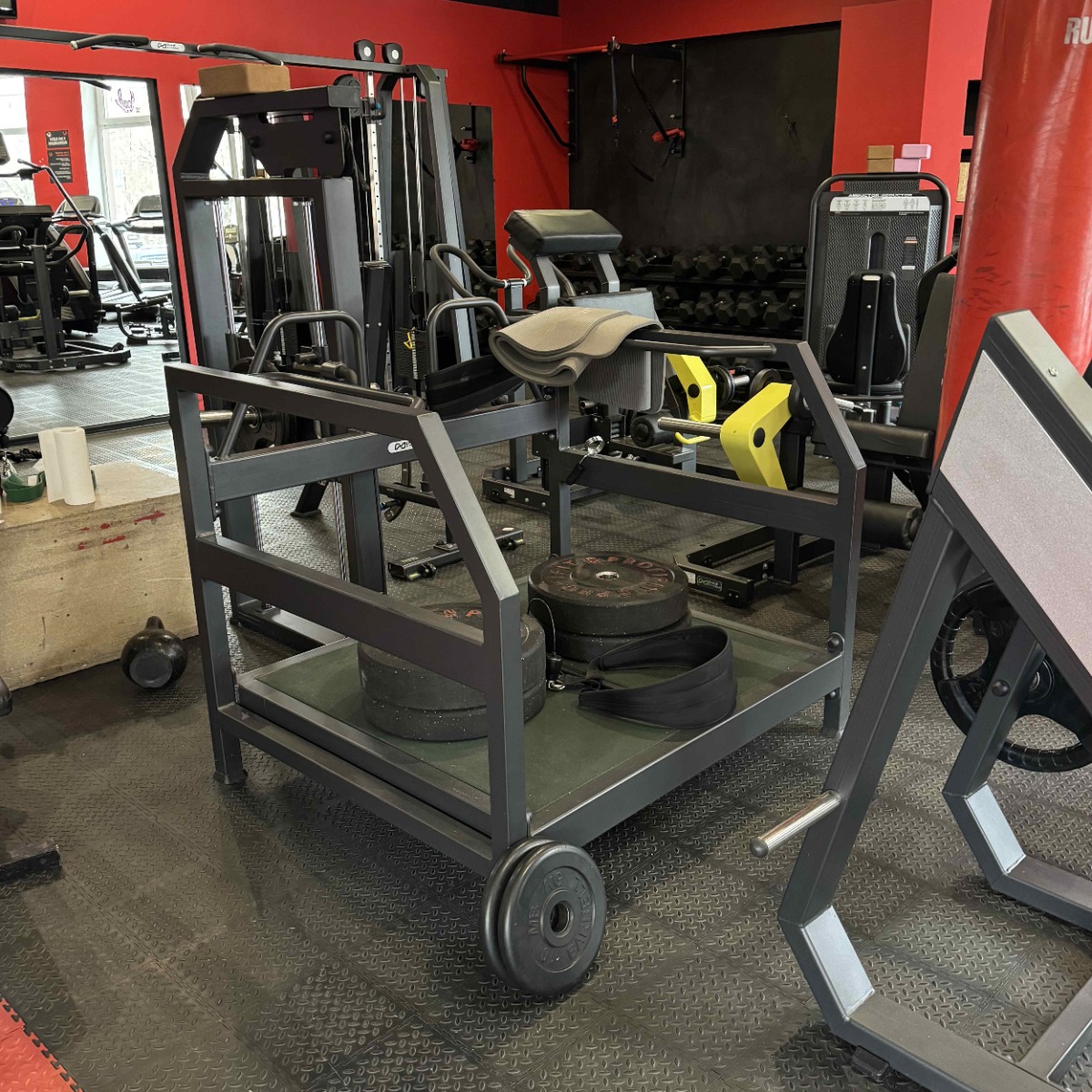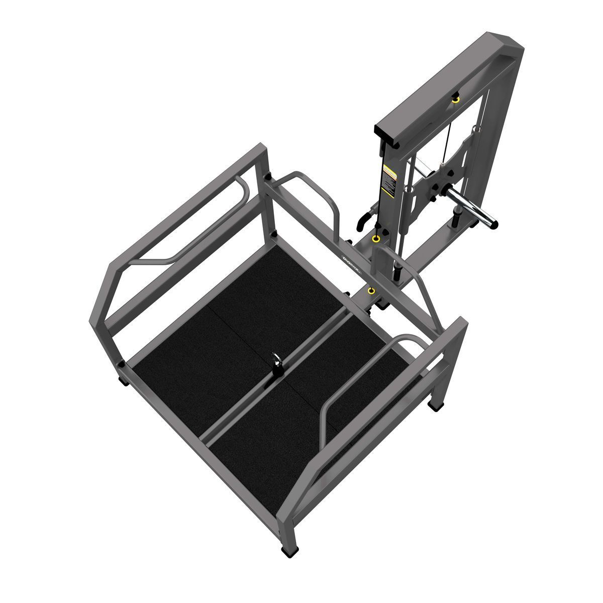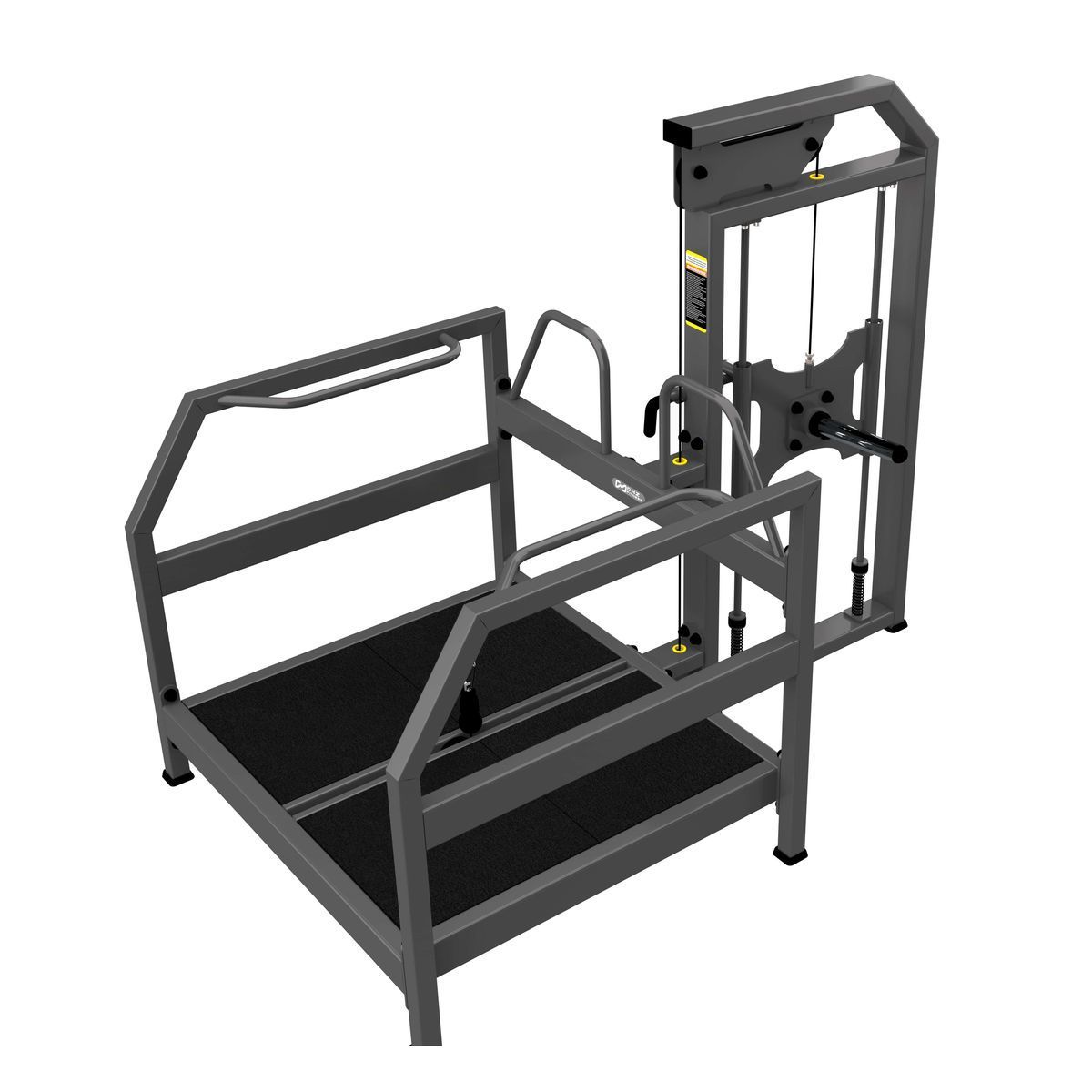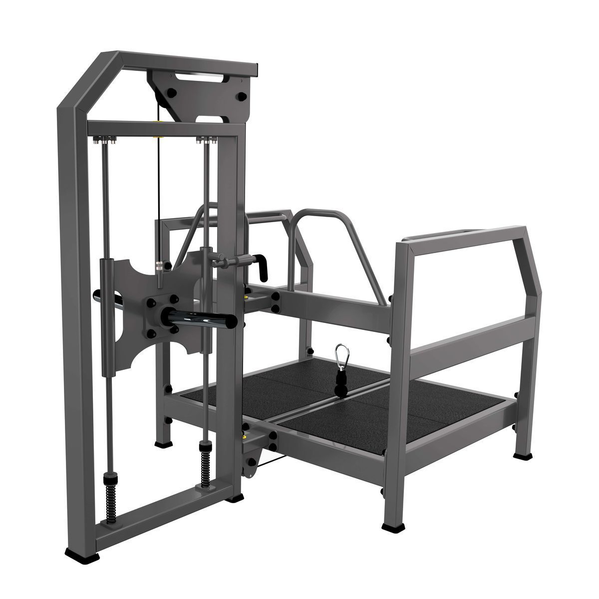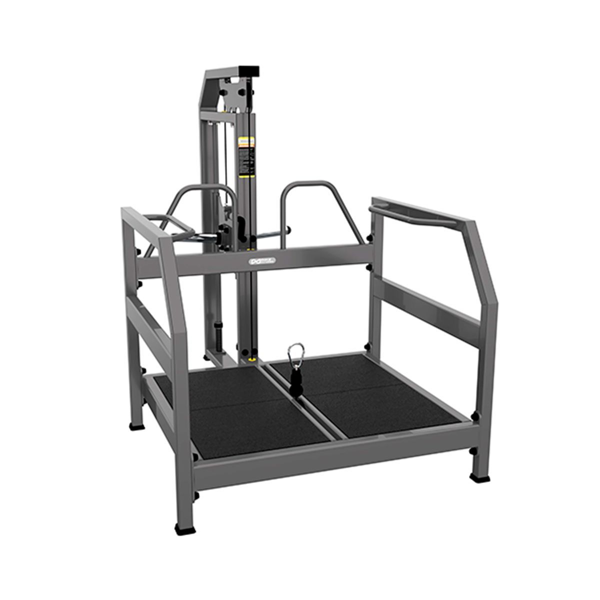 Передача нагрузки осуществляется через тросовую систему: в нижней части платформы установлен карабин для крепления ремня или рукояти (в комплект не входят). Нагрузка передаётся равномерно, обеспечивая плавное движение и высокую безопасность при выполнении упражнения.