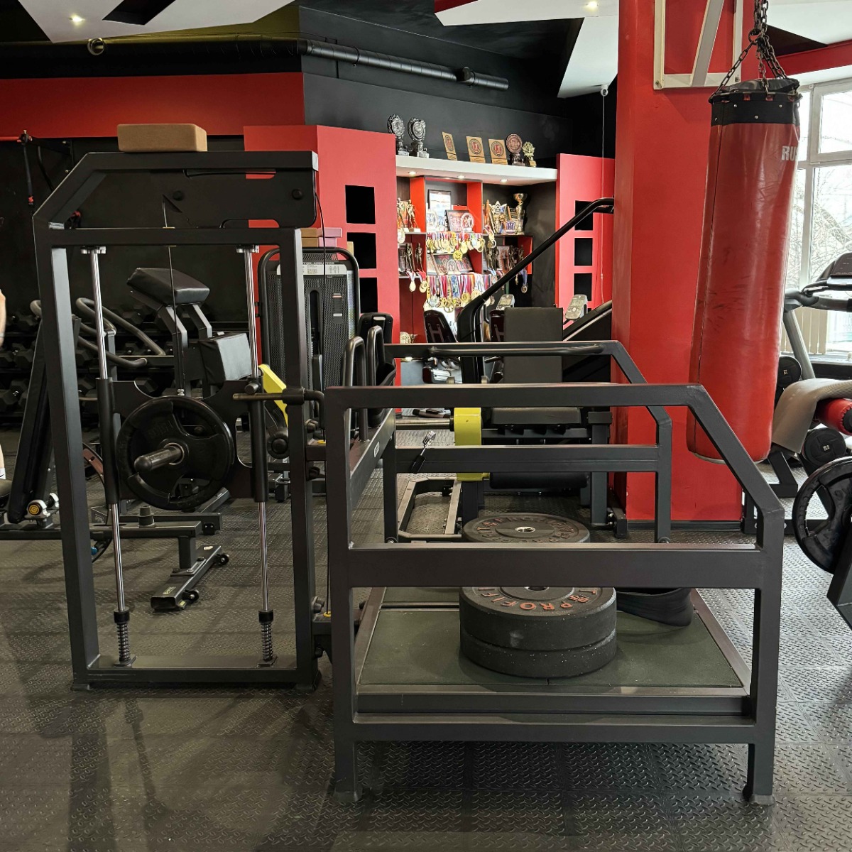 Основание выполнено из стального прямоугольного профиля 100×50 мм с толщиной стенки 3 мм. Конструкция рамы отличается высокой жёсткостью и устойчивостью при работе с большими весами.