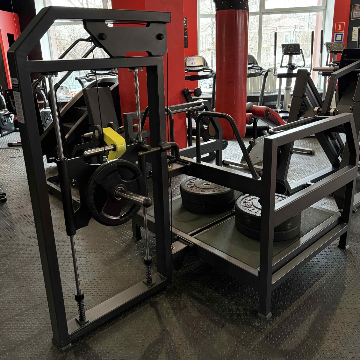 В конструкции тренажёра предусмотрена рама с внутренним направляющим узлом с подвижным грузовым элементом. Плавность хода обеспечивают надежные подшипниках, а в нижней части установлены демпферы и пружины для амортизации и гашения инерции при движении.