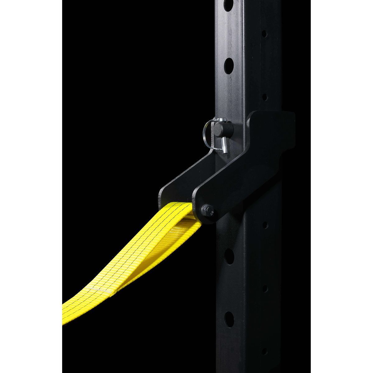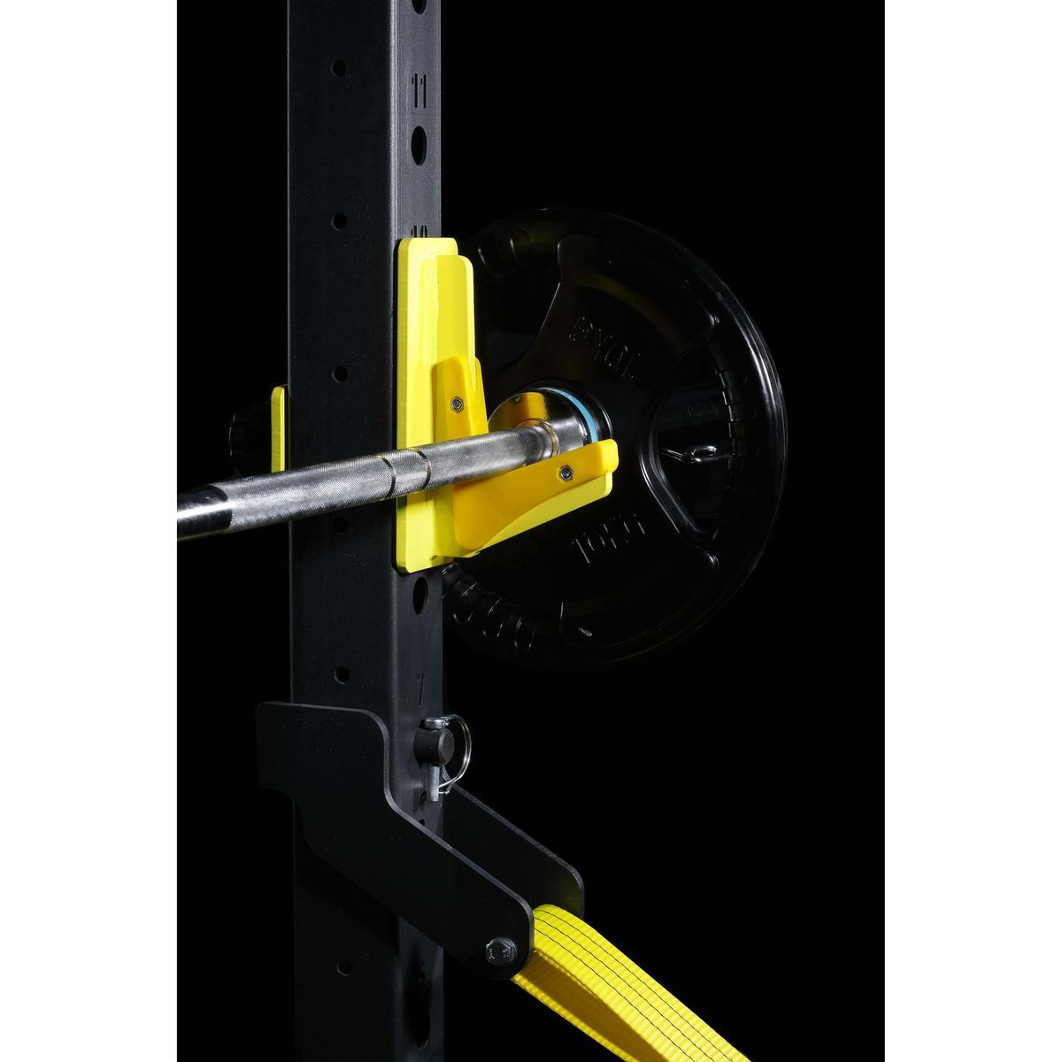 Силовая рама оснащена регулируемыми по высоте страховочными упорами и фиксаторами для штанги, которые можно подстраивать под рост спортсмена или под конкретные тренировки, так же это позволяет установить скамью для выполнения упражнения жим из положений сидя или лежа. Вверху силовой рамы расположен турник. Страховочные упоры сделают упражнения со штангой более безопасными и менее травмоопасными для спортсменов.