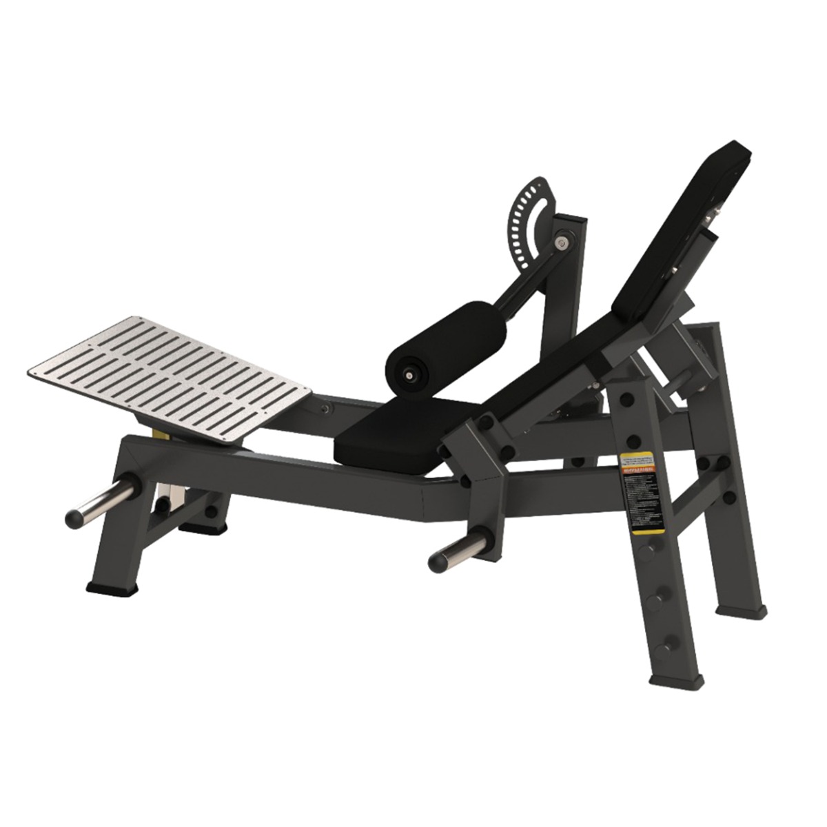 Опора для ног выполнена из металлического листа и листа нержавеющей стали с продольными прорезями, обеспечивающими надёжное сцепление и предотвращающими скольжение. Регулируется по вертикали при помощи полуавтоматического фиксатора. Направляющая для регулировки выполнена из нержавеющей трубы, обеспечивающей плавность хода и долговечность конструкции. Такая конструкция позволяет адаптировать тренажёр под пользователей различного роста и телосложения. Фиксированный угол наклона обеспечивает стабильное положение и исключает люфты подвижных элементов при настройке.