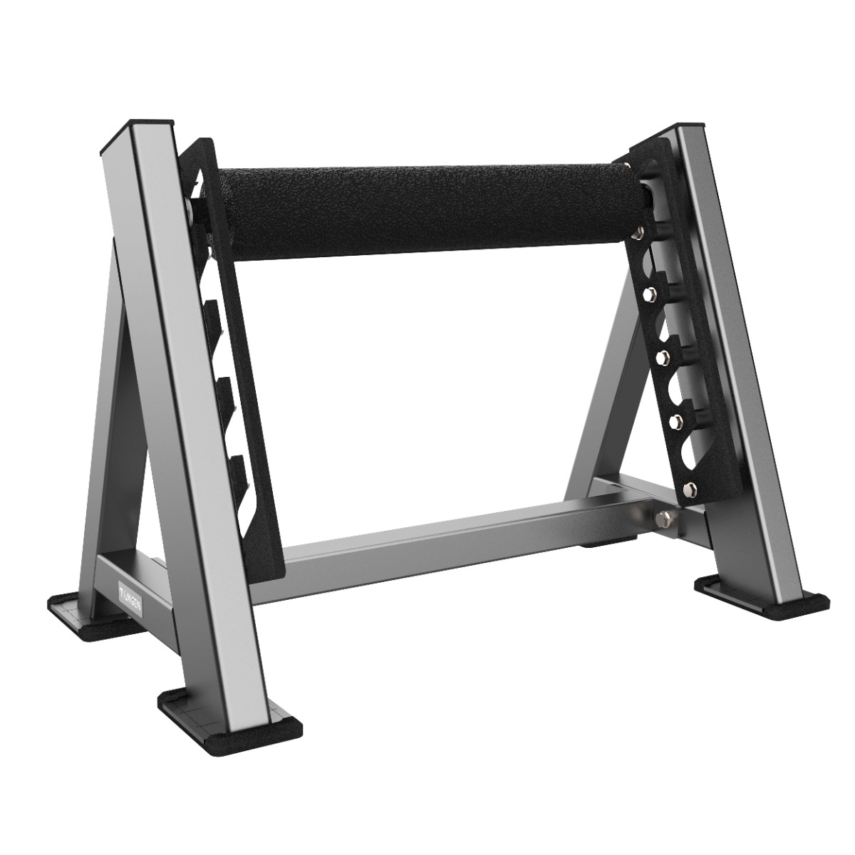 Профессиональный тренажёр для коммерческого использования A3122 Стойка для выпадов предназначен для выполнения болгарских выпадов и отжиманий с опорой на ноги. Конструкция обеспечивает устойчивость и комфорт при выполнении упражнений, позволяя эффективно прорабатывать квадрицепсы, ягодичные, приводящие мышцы, а также верхние грудные и передние дельтовидные мышцы.