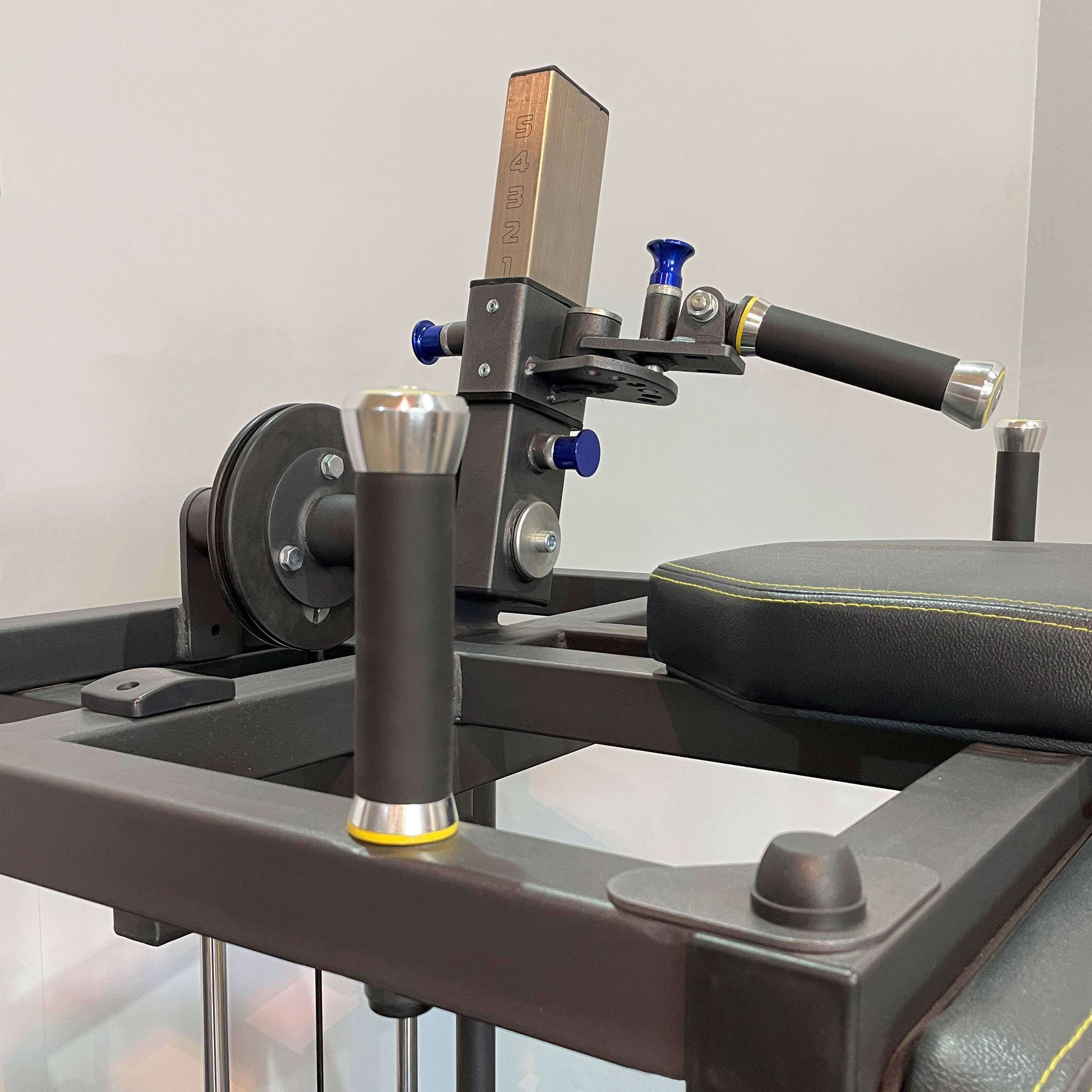 Рабочая рукоять и дополнительные опорные рукояти, расположенные по обе стороны стола, выполнены из металлического прутка с обрезиненным покрытием. Торцы оснащены металлическими наконечниками с фиксацией болтовым соединением.