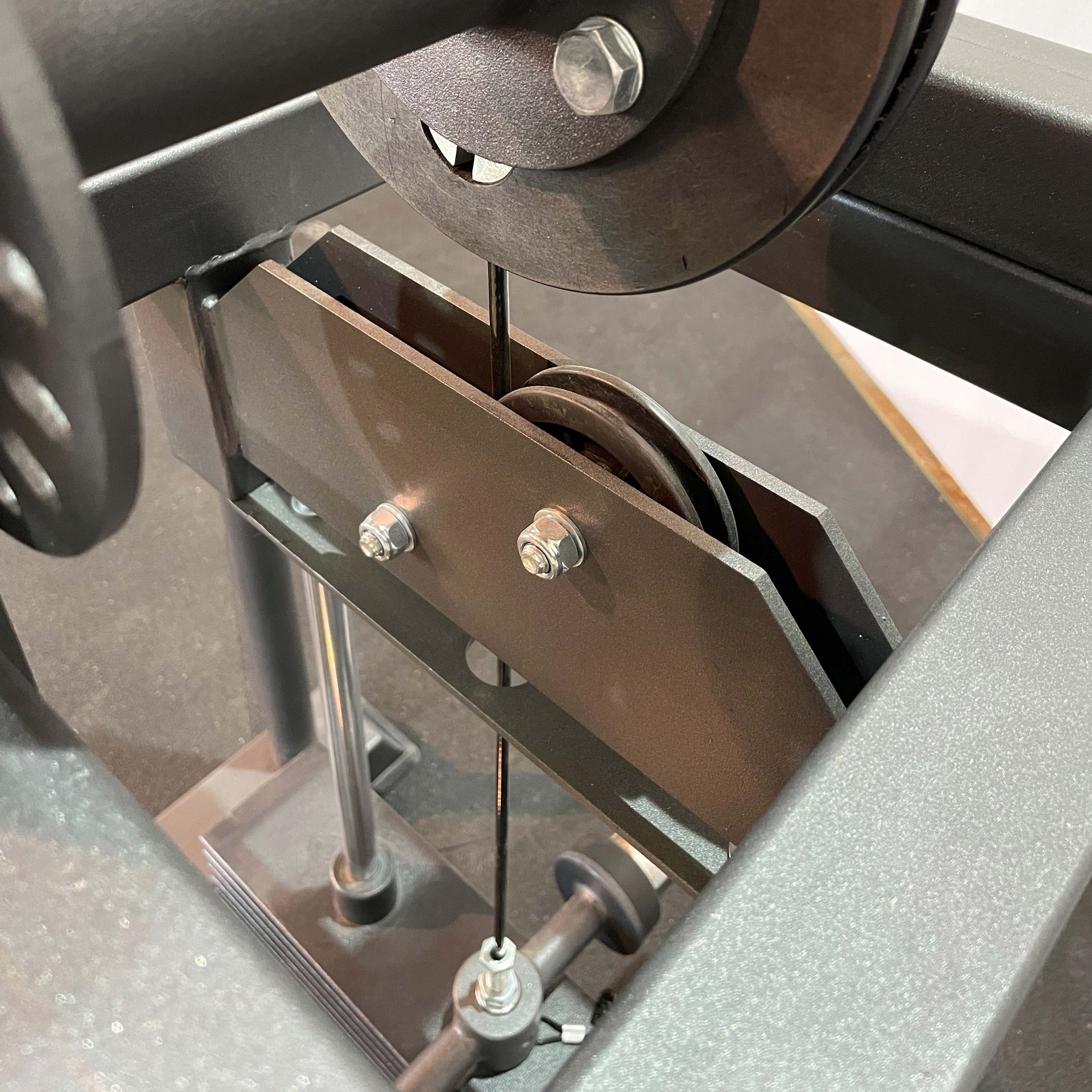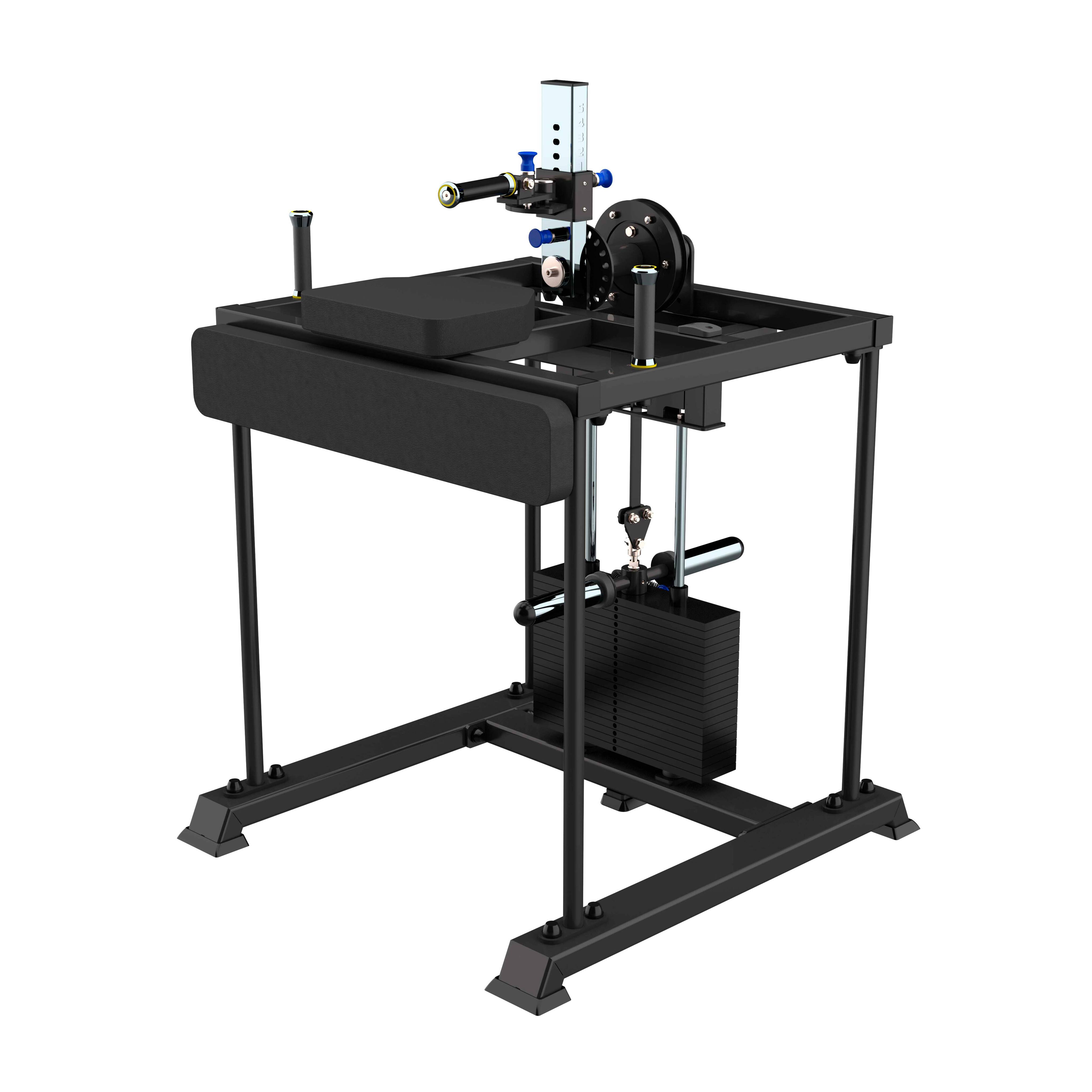 Система нагрузки – тросовая, с весовым стеком 100 кг. Дополнительно на грузоблочном узле установлены два накопителя для свободных весов, позволяющие увеличить нагрузку ещё на 60 кг.