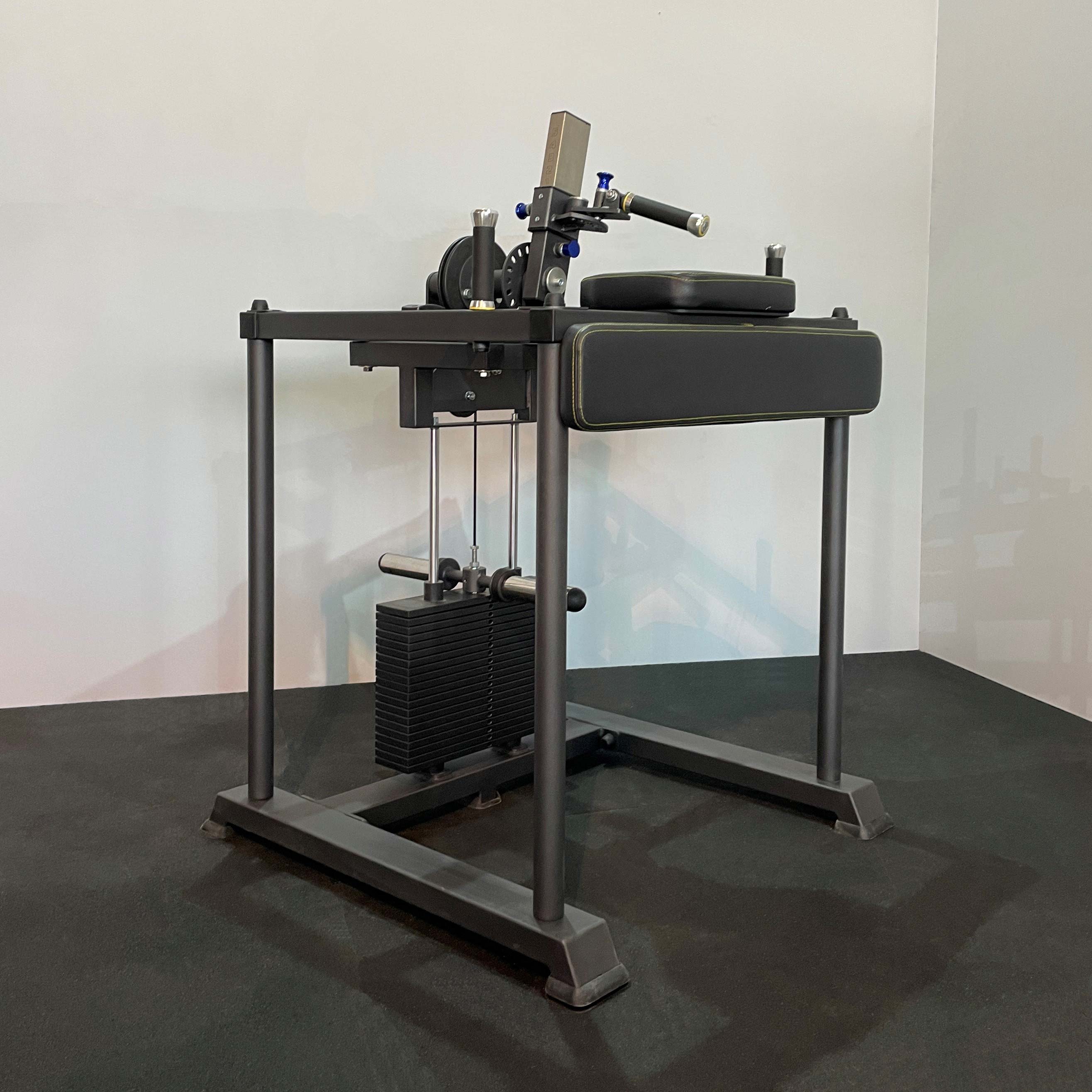 Рабочая поверхность выполнена в формате армрестлинг-стола и оснащена боковой опорной подушкой для фиксации корпуса и верхней подушкой для предплечья.