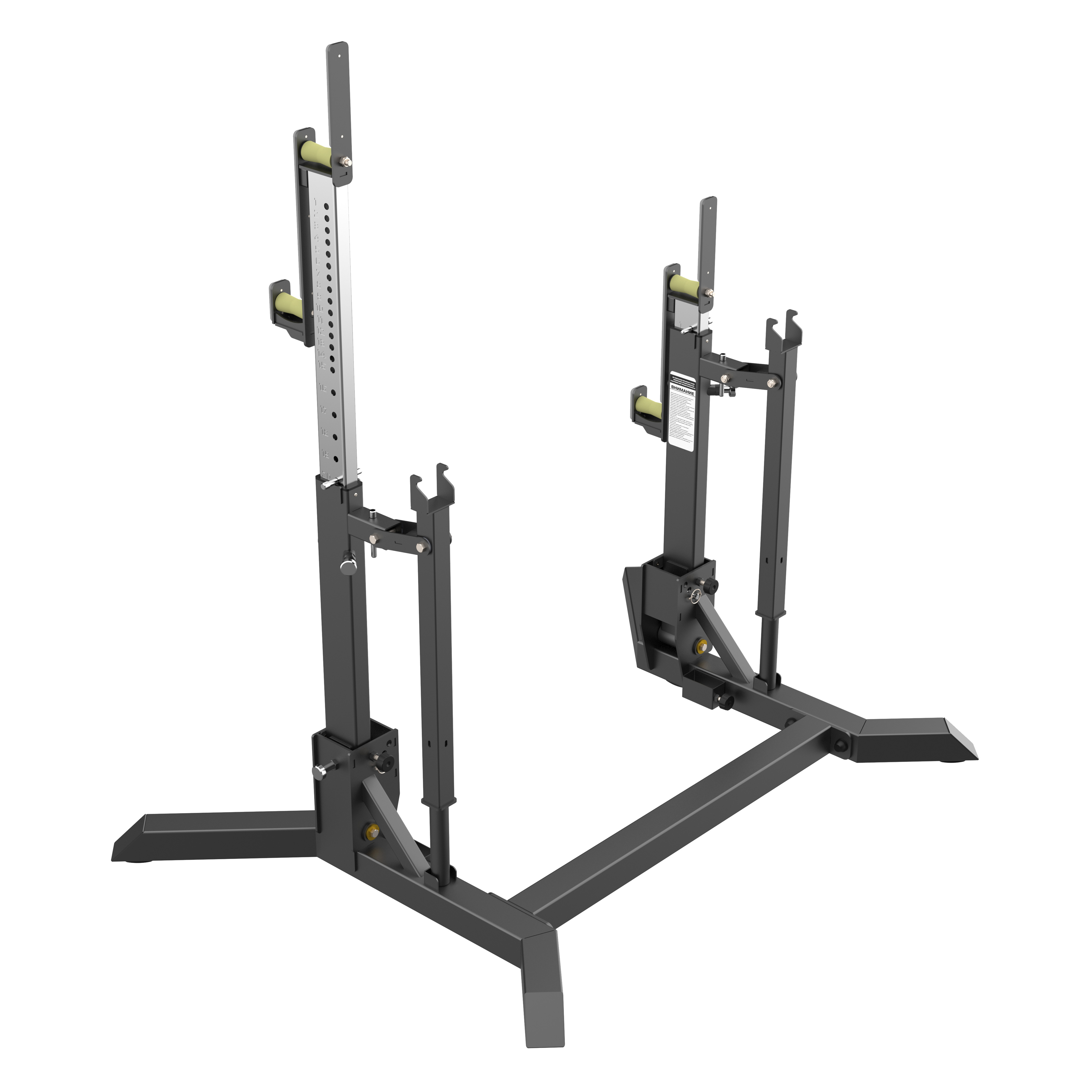 Диапазон регулировки упоров для штанги составляет 750–1100 мм с шагом 25 мм.