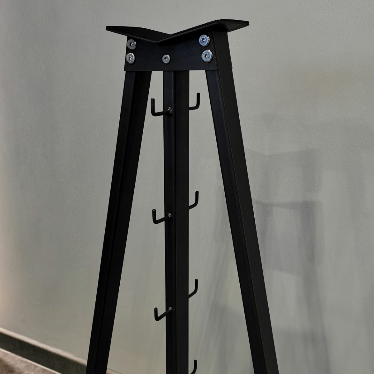Верхняя часть стойки (подставка для хранения инвентаря) размером 220×110 мм изготовлена из листового металла толщиной 3 мм с резиновым рифленым ковриком для предотвращения скатывания размещаемых предметов.