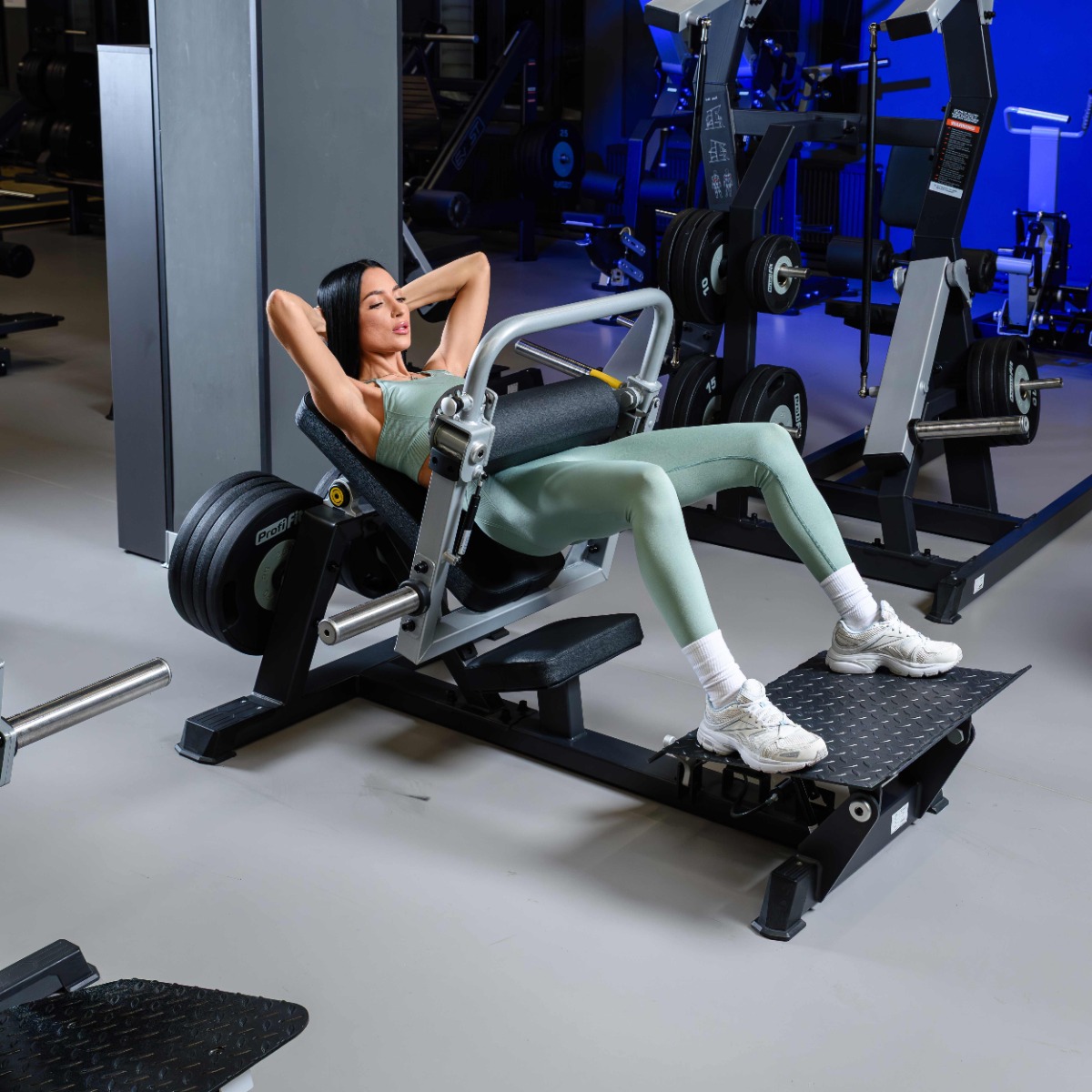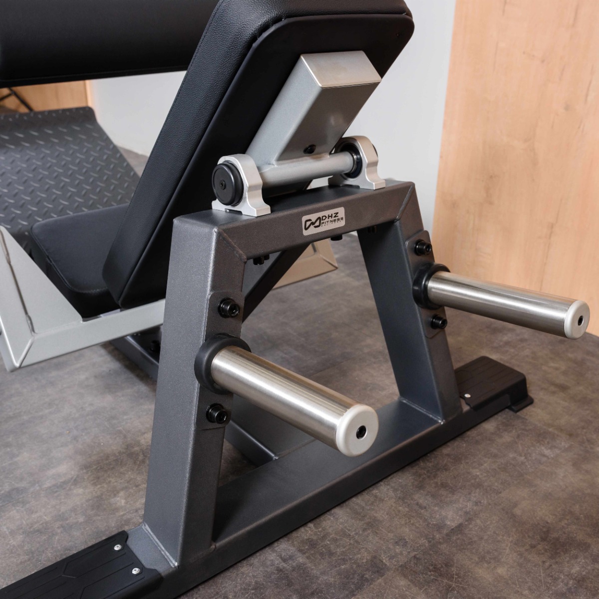 Тренажер оборудован защитными пластиковыми подпятниками для обеспечения устойчивости и предотвращения механических повреждений напольного покрытия.