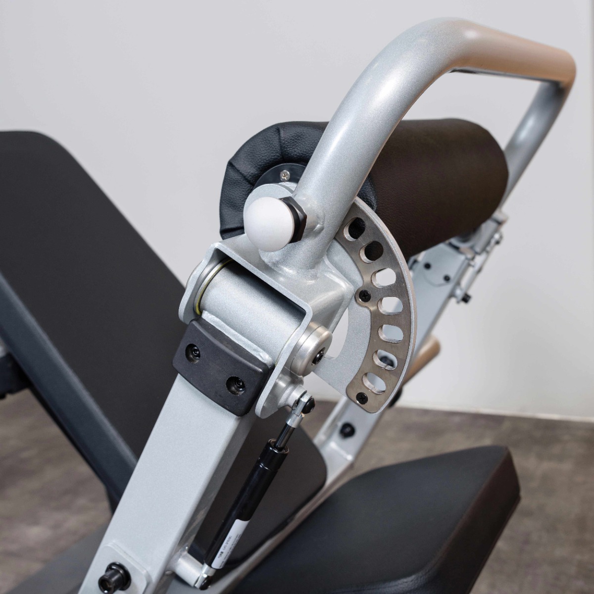 Широкий валик для фиксации бёдер длиной 450 мм регулируется в восьми положениях по дугообразной траектории, система регулировки газлифт. Валик оборудован откидным механизмом с рукояткой, при помощи которого можно беспрепятственно занять исходное положение.