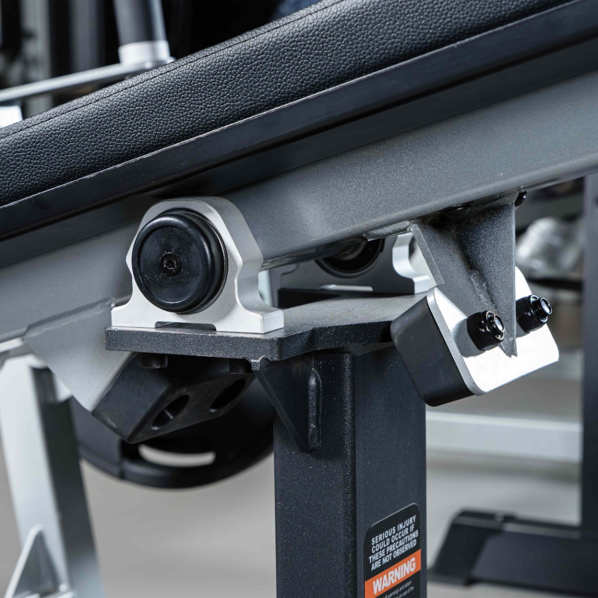 Два хромированных накопителя диаметром 50 мм для работы со свободными весами изготовлены из толстостенной стальной трубы. На торцах накопителей установлены заглушки из пластика.