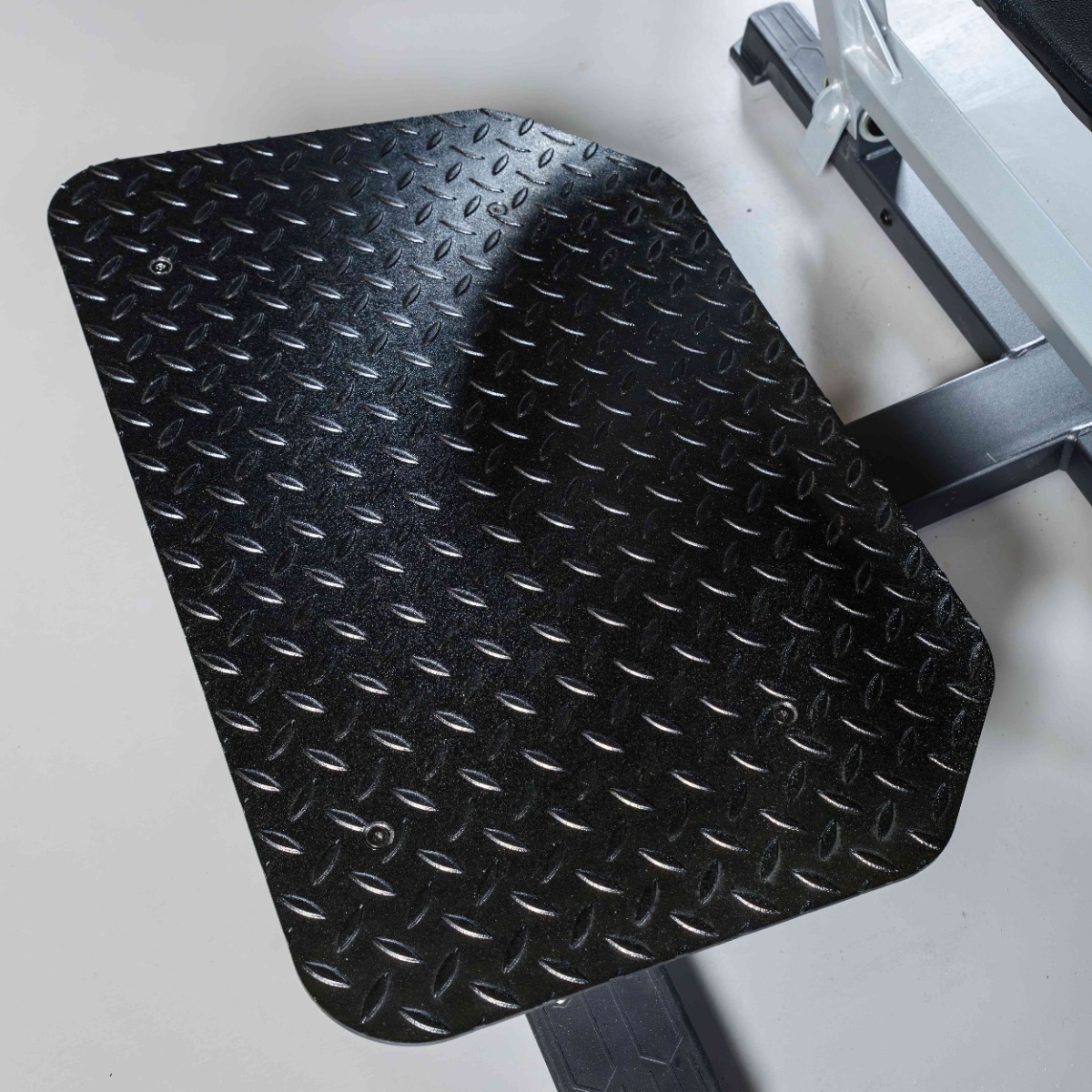 Тренажер оборудован защитными пластиковыми подпятниками для обеспечения устойчивости и предотвращения механических повреждений напольного покрытия.