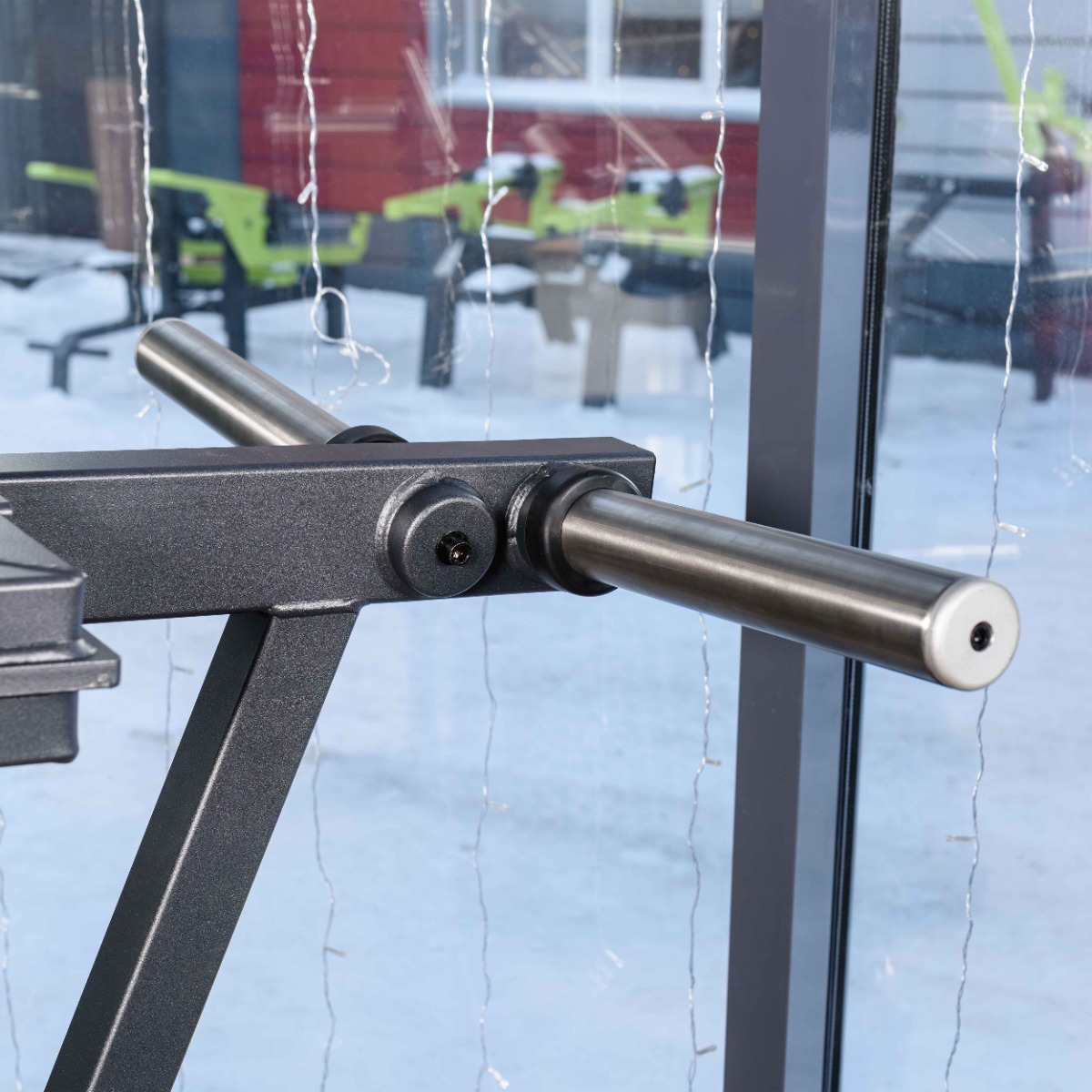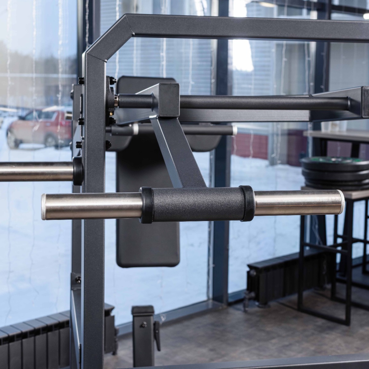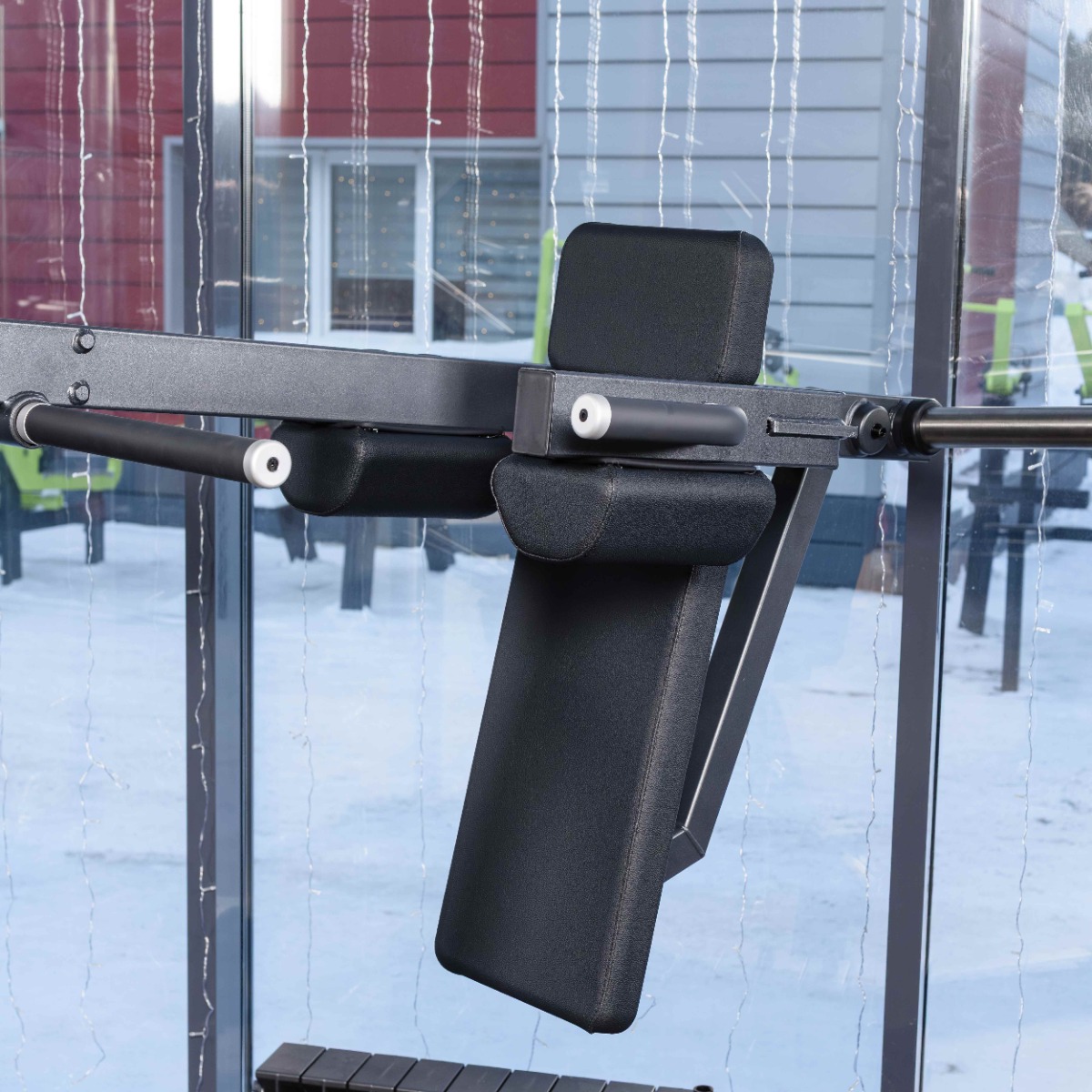 Рукояти, расположенные около плечевых подушек, выполнены из стального прутка с обрезиненным покрытием и оснащены торцевыми заглушками, зафиксированными болтовым соединением.