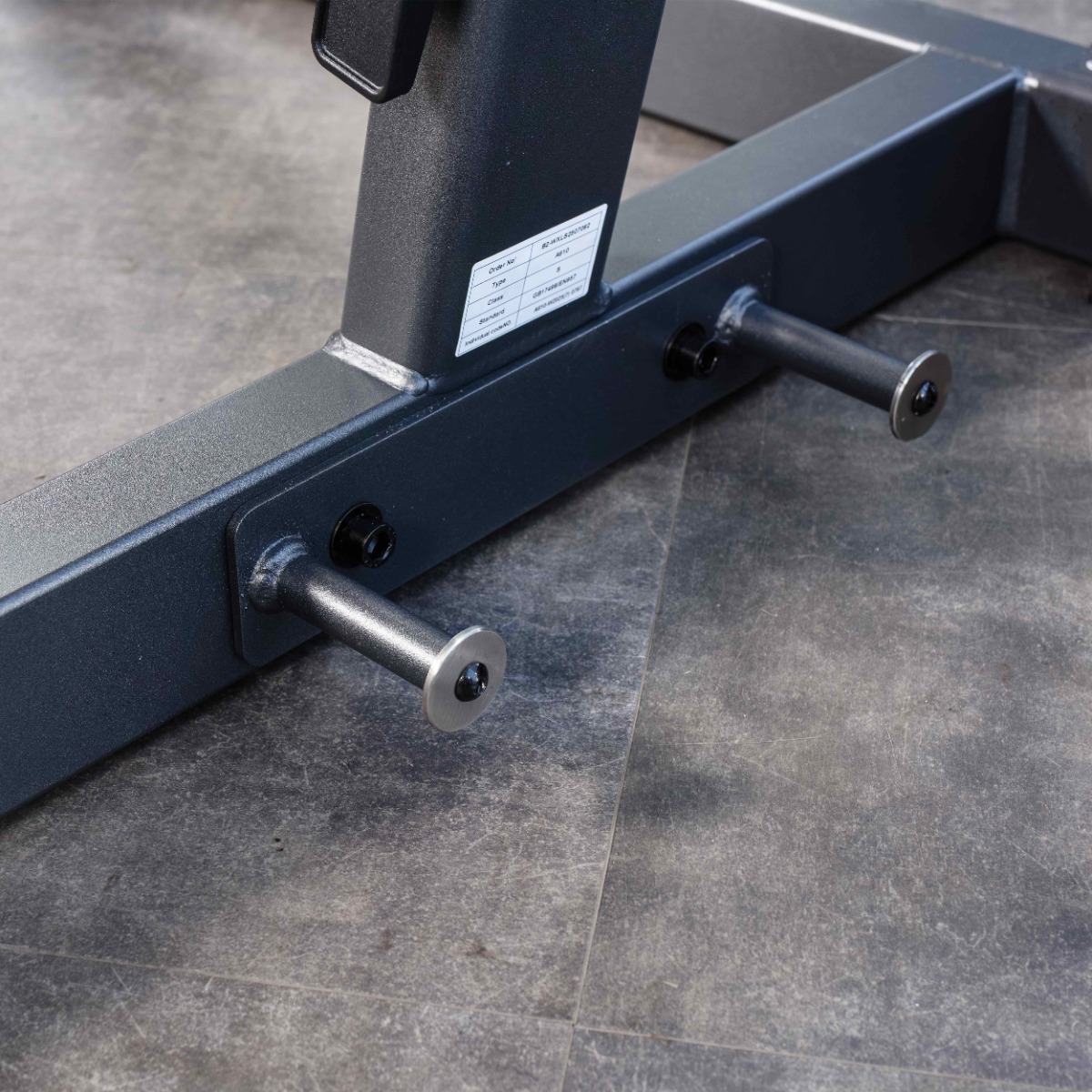 Опорные элементы тренажёра оборудованы пластиковыми подпятниками, предотвращающими повреждение напольного покрытия и обеспечивающими устойчивость оборудования.