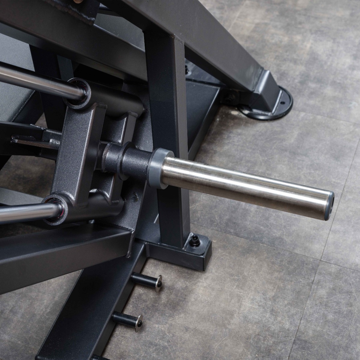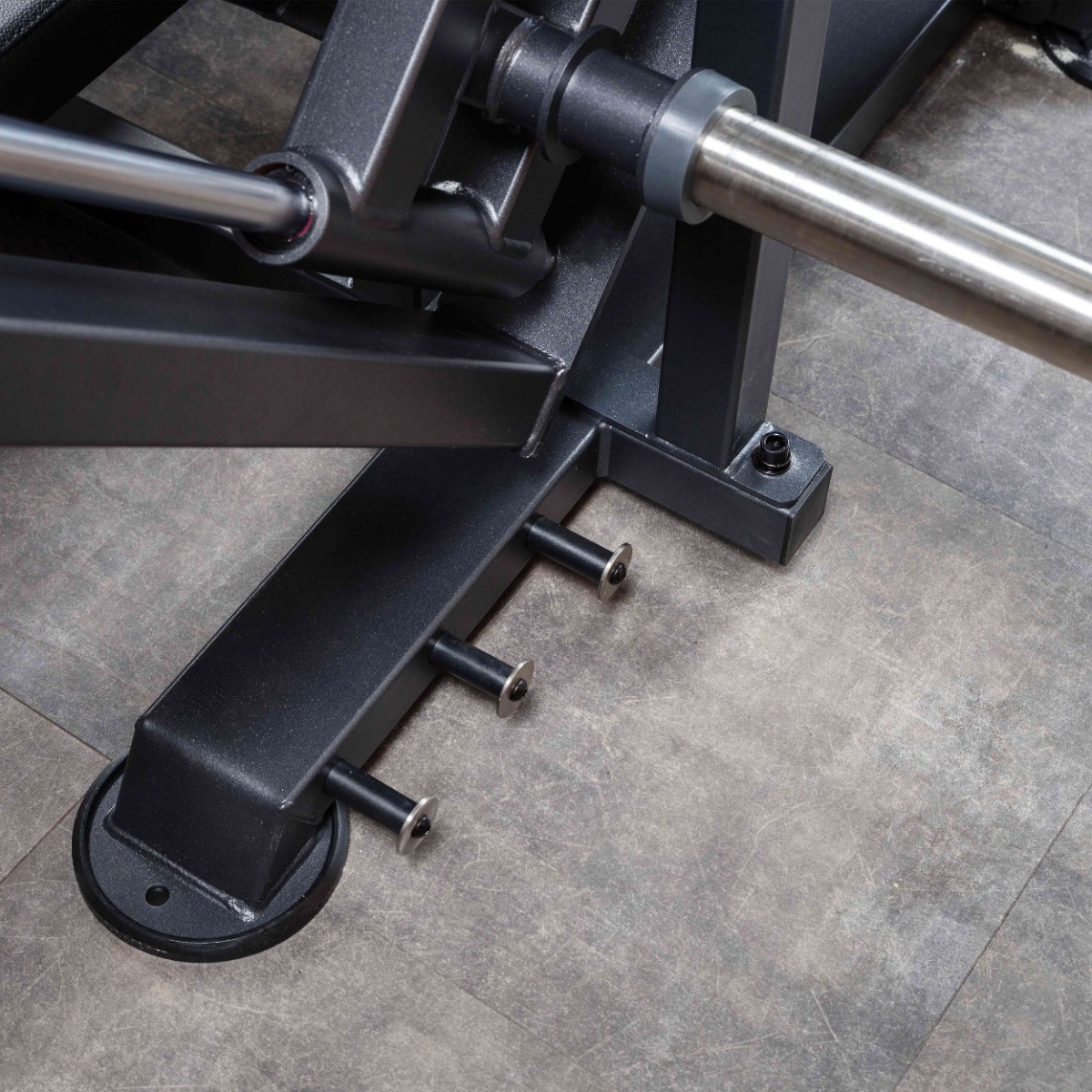 Противоположный конец рычага оснащён рабочим упором (рычагом толкания) из круглой стальной трубы длиной 510 мм и диаметром 75 мм. Элемент покрыт порошковой краской и регулируется по дугообразной траектории в шести фиксированных положениях при помощи механического фиксатора.