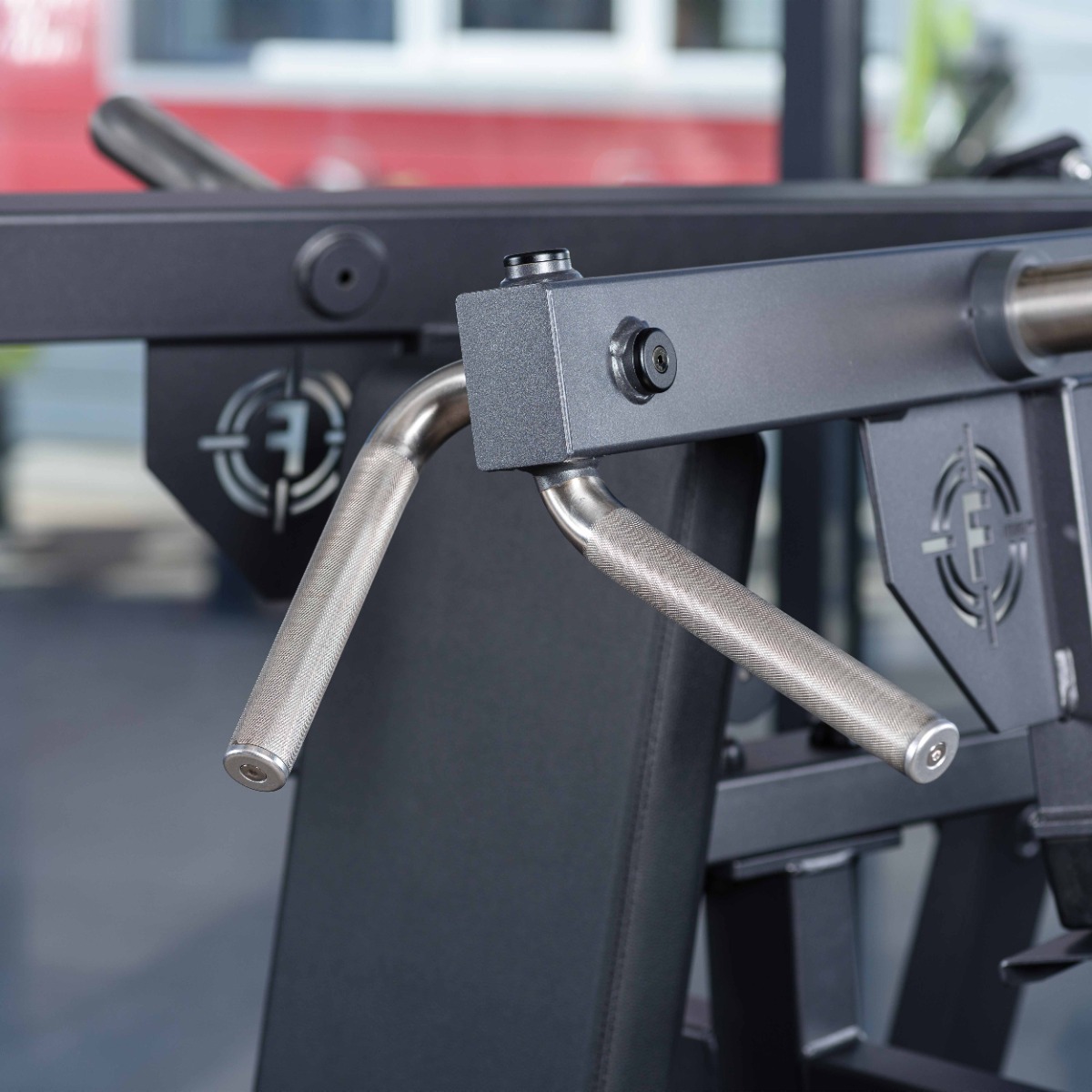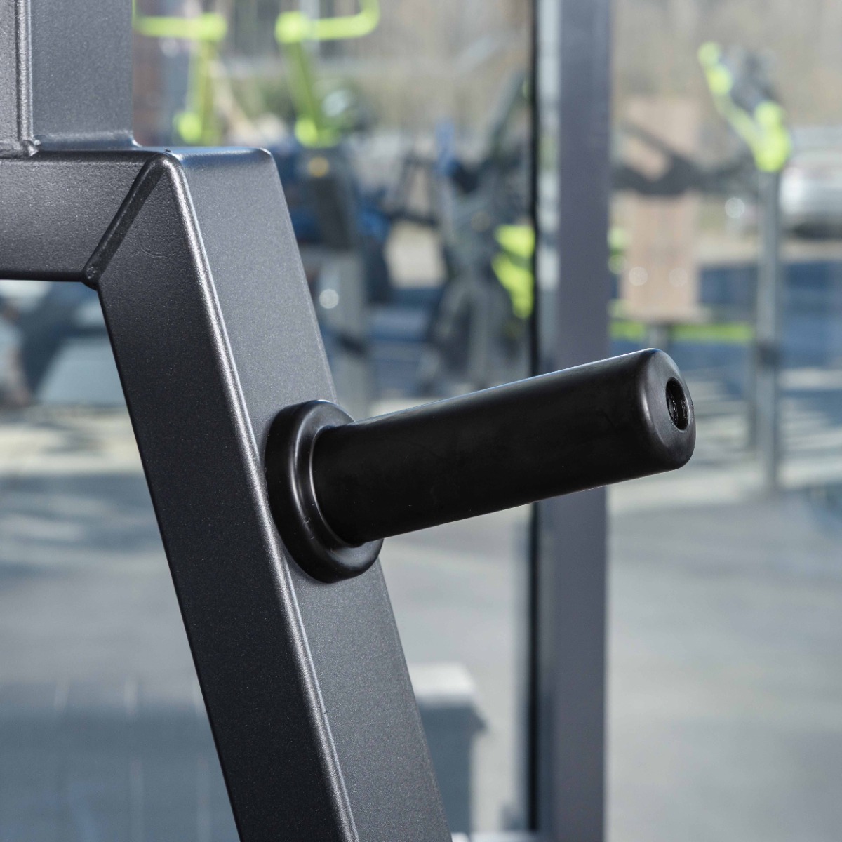 На подвижных рычагах установлено по две парные рукояти – для узкого и широкого хвата. Рукоять узкого хвата имеет длину 170 мм, рукоять широкого хвата – 195 мм. Обе рукояти изготовлены из стального прутка диаметром 30 мм с мягкой ромбовидной накаткой по рабочей зоне.