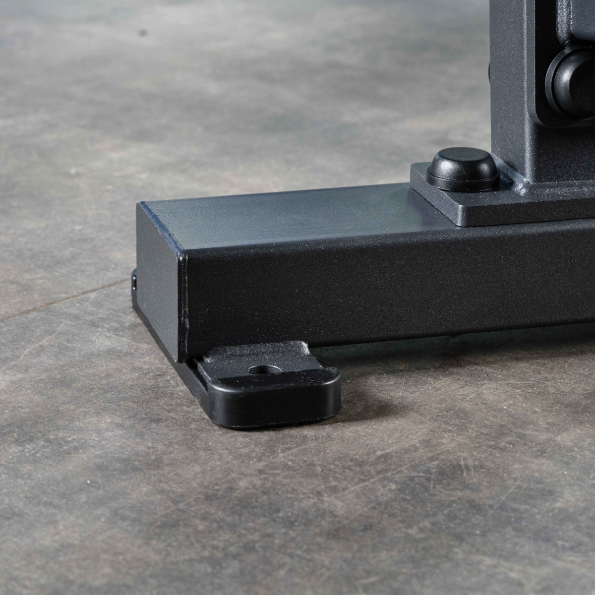 Опорные элементы оснащены прямоугольными резиновыми подпятниками с отверстиями для фиксации к полу. Такая конструкция гарантирует устойчивость оборудования, равномерное распределение нагрузки и защиту покрытия от повреждений.