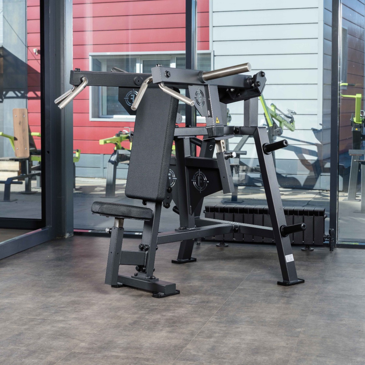 Профессиональный тренажёр для коммерческого использования A750 Жим от плеч (двойной хват) предназначен для изолированной проработки дельтовидных мышц, трицепсов и верхней части грудных мышц. Конструкция с независимыми рычагами обеспечивает естественную биомеханику движения, равномерное распределение нагрузки и возможность проработки каждой стороны отдельно.