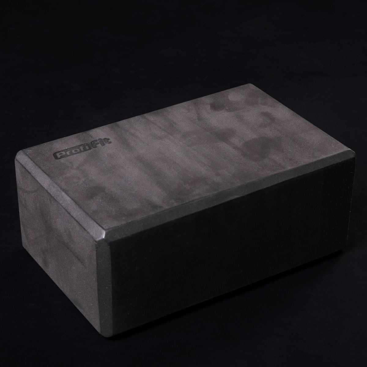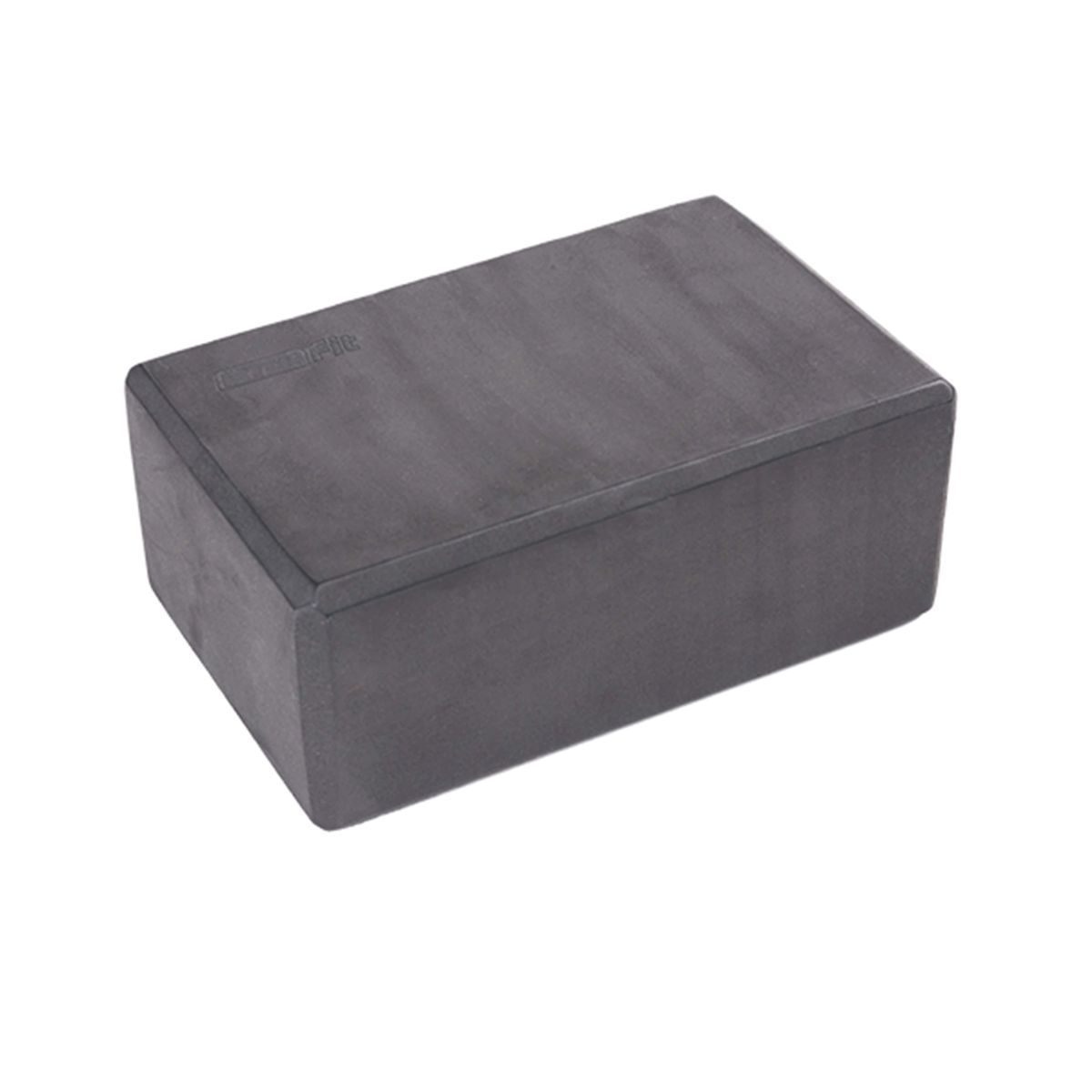 Опорный блок для занятий йогой, прямоугольной формы, черного цвета, сплошной конструкции без отверстий и полостей. Поверхность не скользящая, отлично держащая упор. Могут использоваться все три стороны блока, углы которого скошены для удобства хвата.