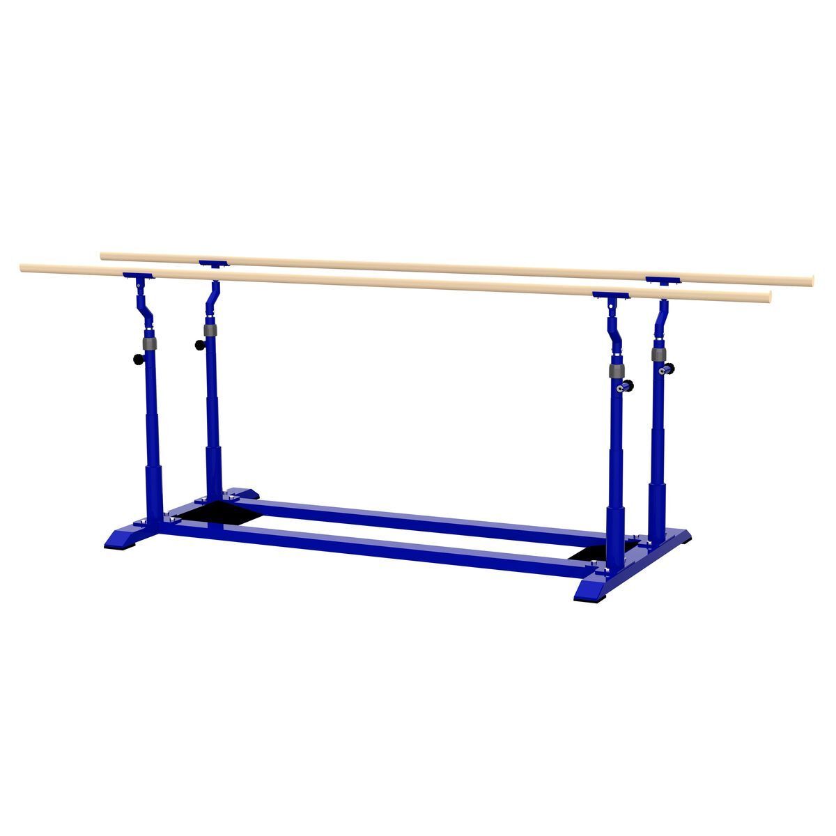 Брусья гимнастические мужские параллельные представляют собой сборную конструкцию, состоящую из рамы, изготовленной из швеллера 100х50х5 мм, четырёх стоек изготовленных из качественных стальных материалов с механизмами зажима и фиксации, четырёх вертлюгов.