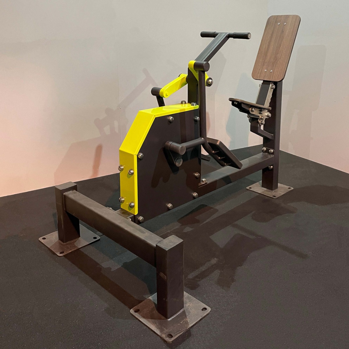 Рычаги тренажера соединены с вращающимся блоком нагрузки, изготовленным из листового металла толщиной 2 мм.