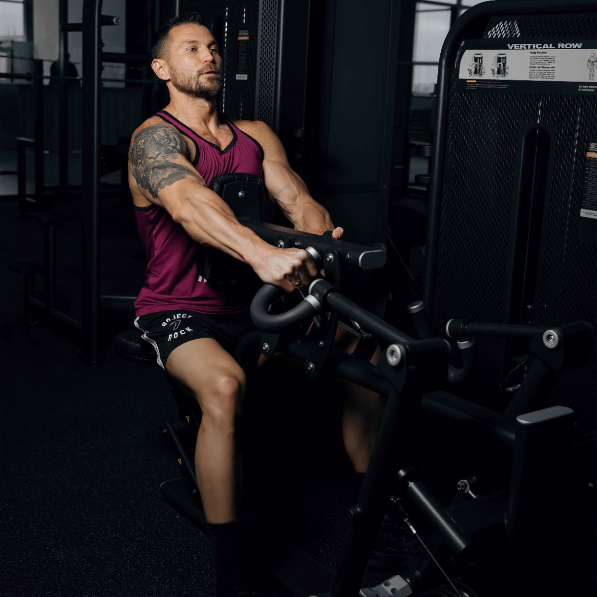 Профессиональный тренажер для коммерческого использования E7034 Гребная тяга с упором на грудь предназначен для изолирующих упражнений на широчайшие мышцы спины.