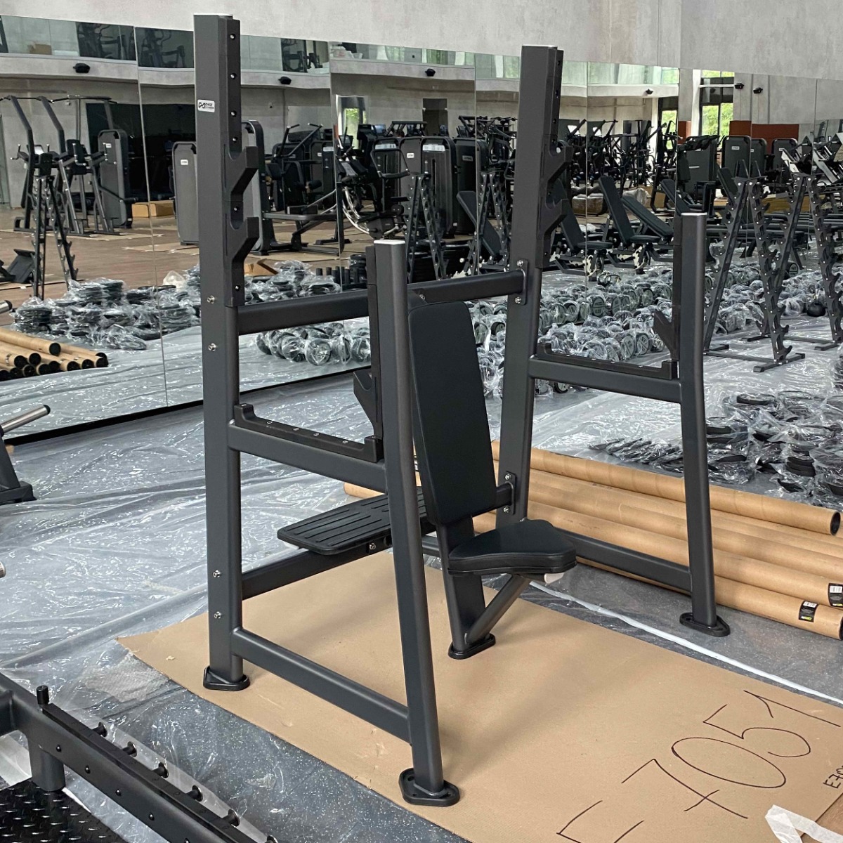 Профессиональный тренажер для коммерческого использования E7051 Скамья для вертикального жима штанги предназначен для проработки дельтовидных, надостных, трапециевидных мышц, ромбовидных, передних зубчатых мышц и трицепсов.
