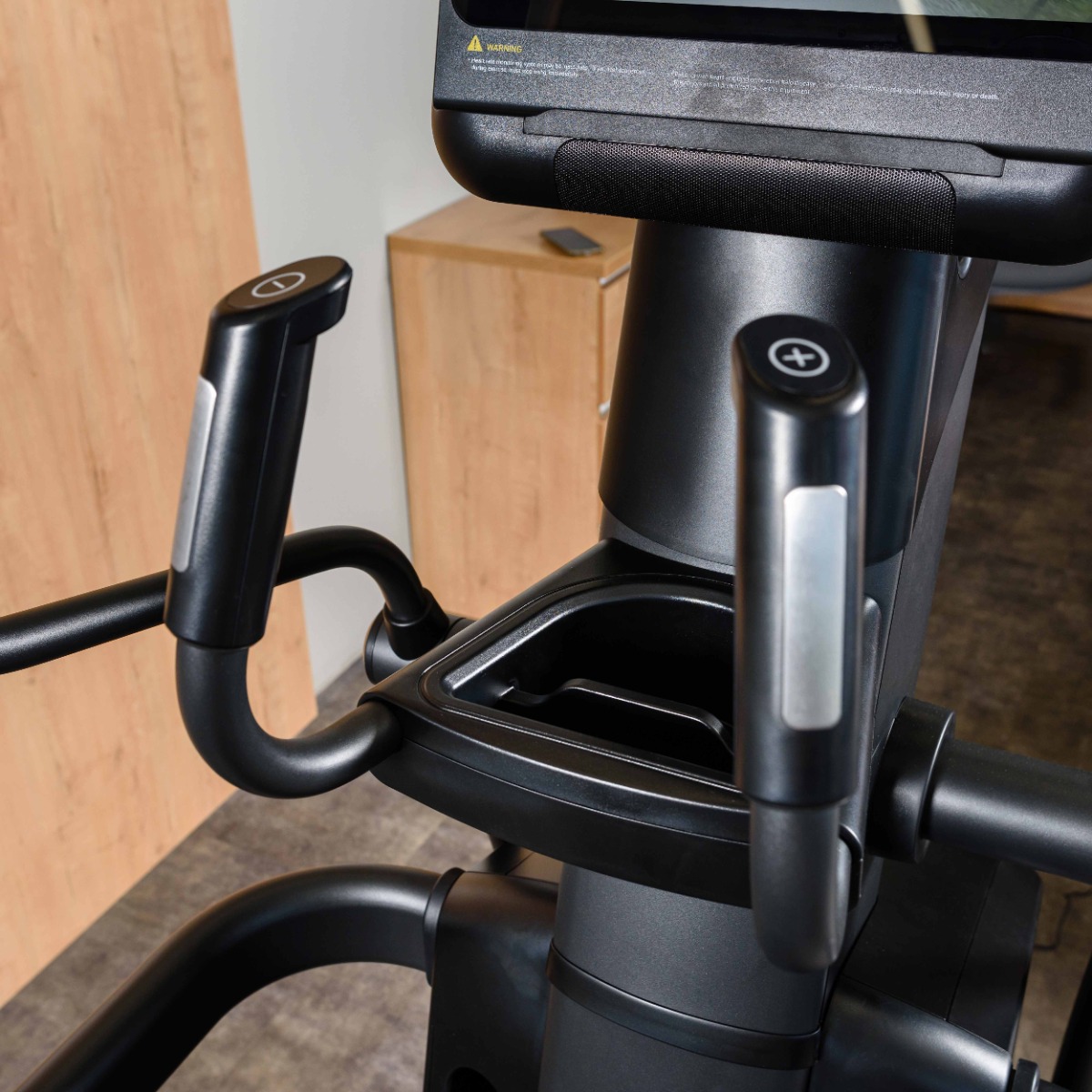 Две пары рукояток: динамичные для выполнения подхода и статичные с датчиками измерения частоты сердечных сокращений и клавишами быстрого доступа к увеличению или снижению уровня нагрузки.
