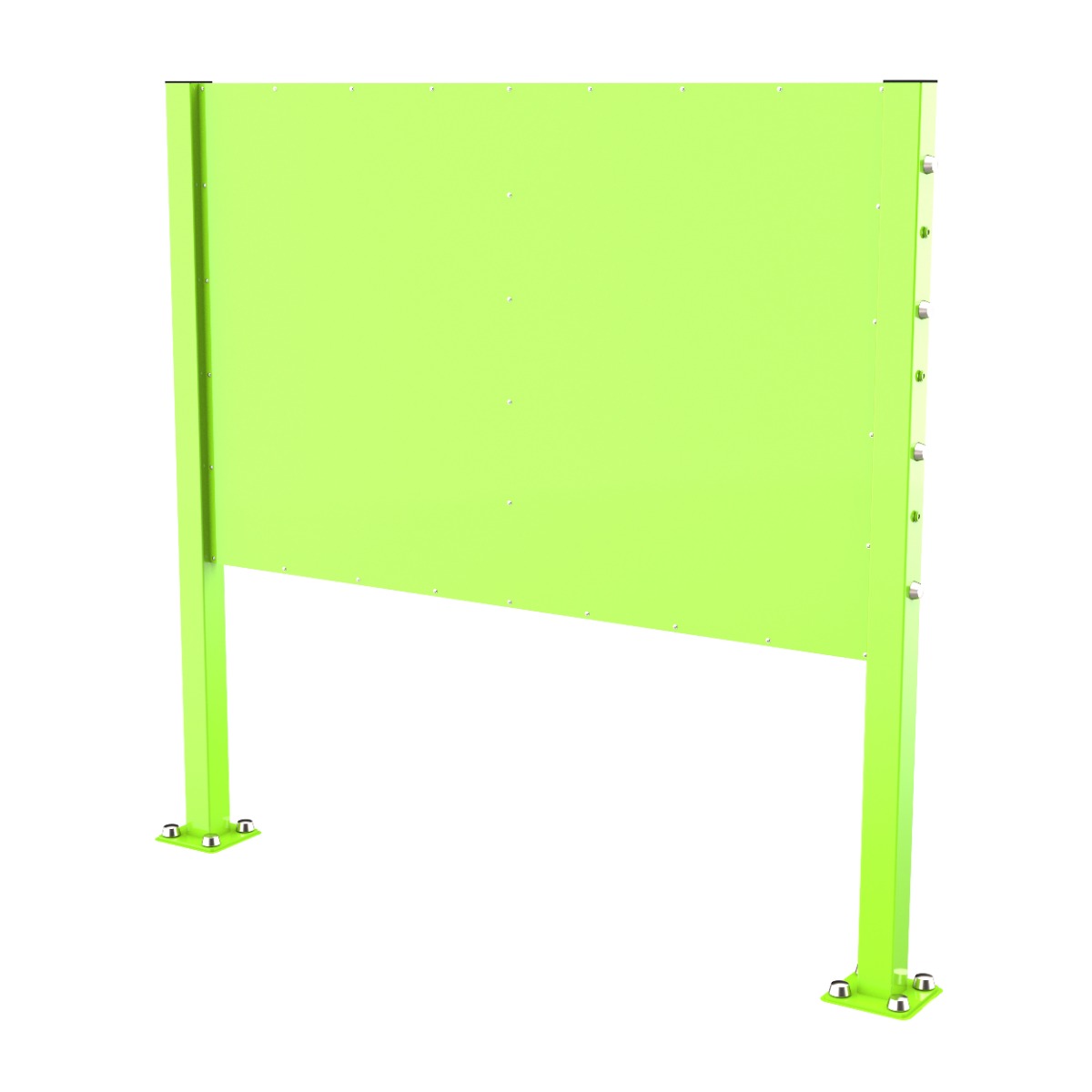 Надёжность и прочность разъёмных соединений конструктивных элементов оборудования обеспечиваются за счёт использования высококачественного оцинкованного крепежа, выступающие части которого защищены антивандальными хромированными заглушками из стали толщиной 1 мм.