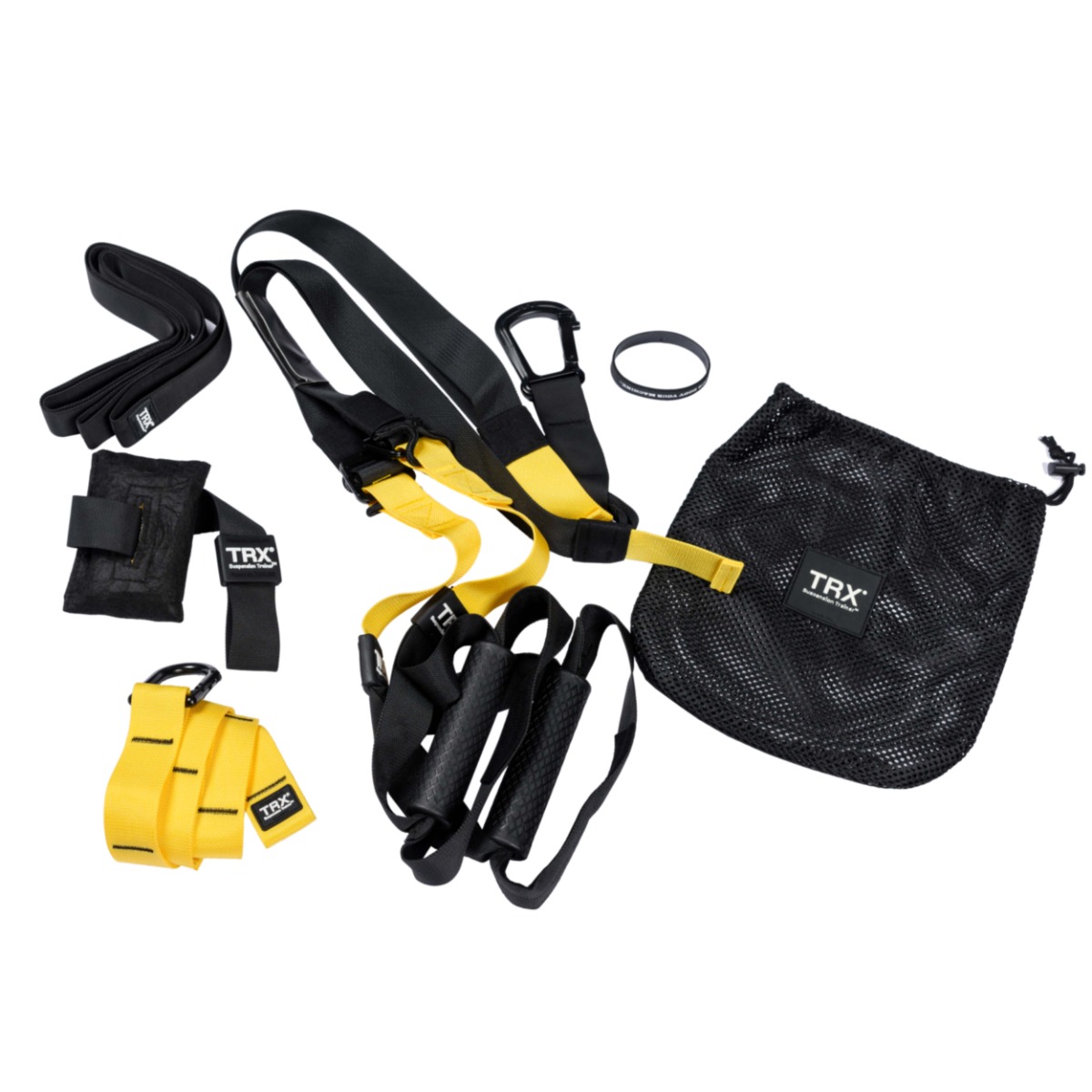 Прочные петли со страховочной петлёй и карабином для выполнения упражнений одной рукой или ногой. На петлях закреплены прорезиненные рукоятки для предотвращения натирания кожи и надежного сцепления с рукой во время тренировки. Оснащены надёжной модульной системой регулировки строп.