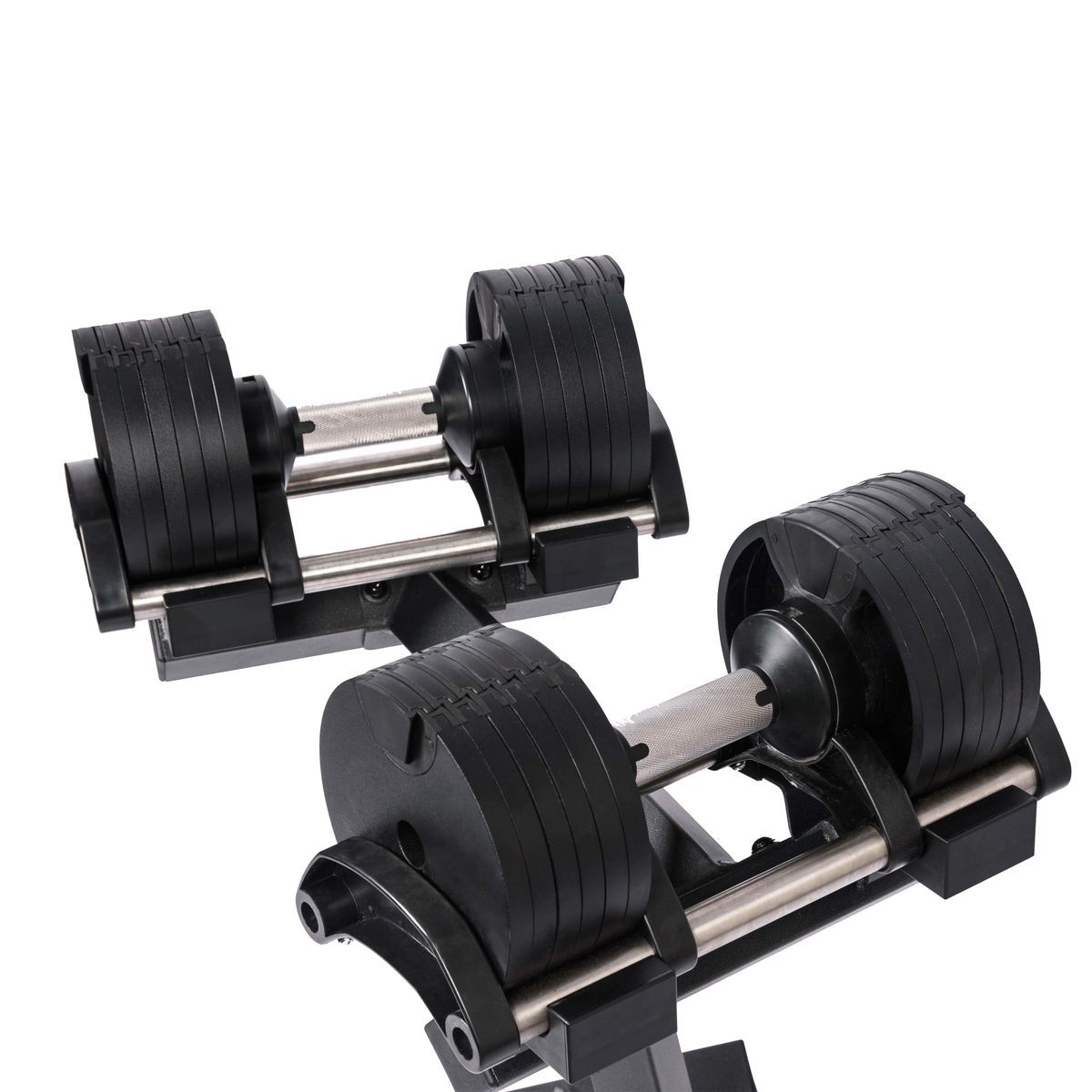 Стартовая длина регулируемой гантели: 240 мм. Дополнительный вес увеличивает общую длину гантели. Длина гантели со всеми дисками: 350 мм.