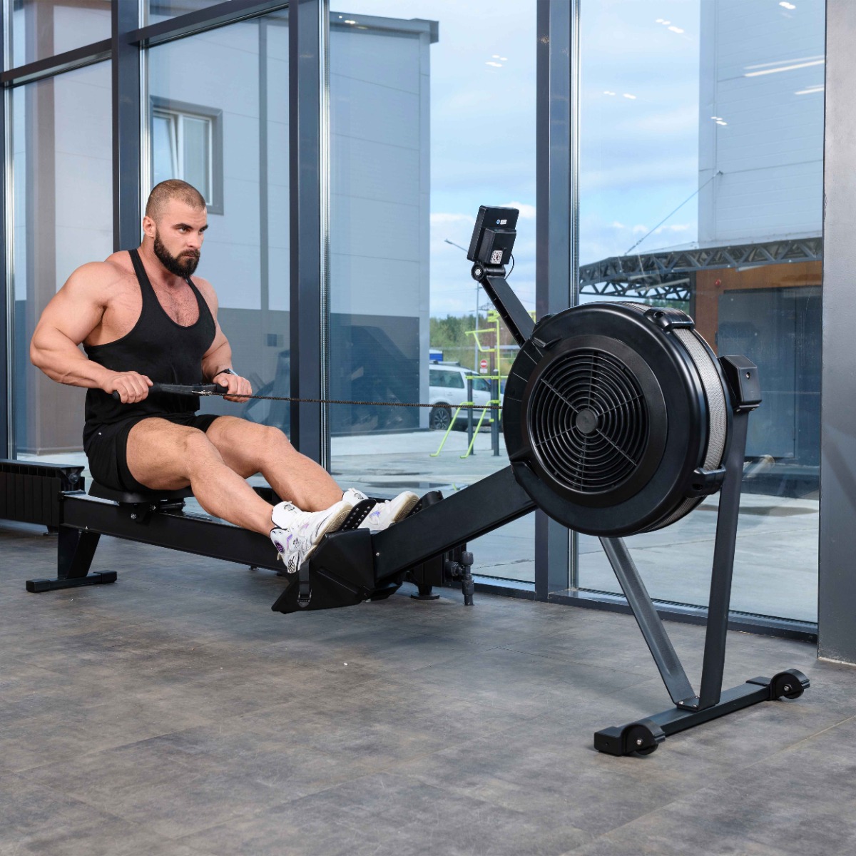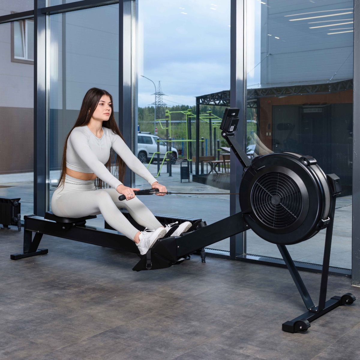 В тренажере используется воздушная регулировка уровня сопротивления.