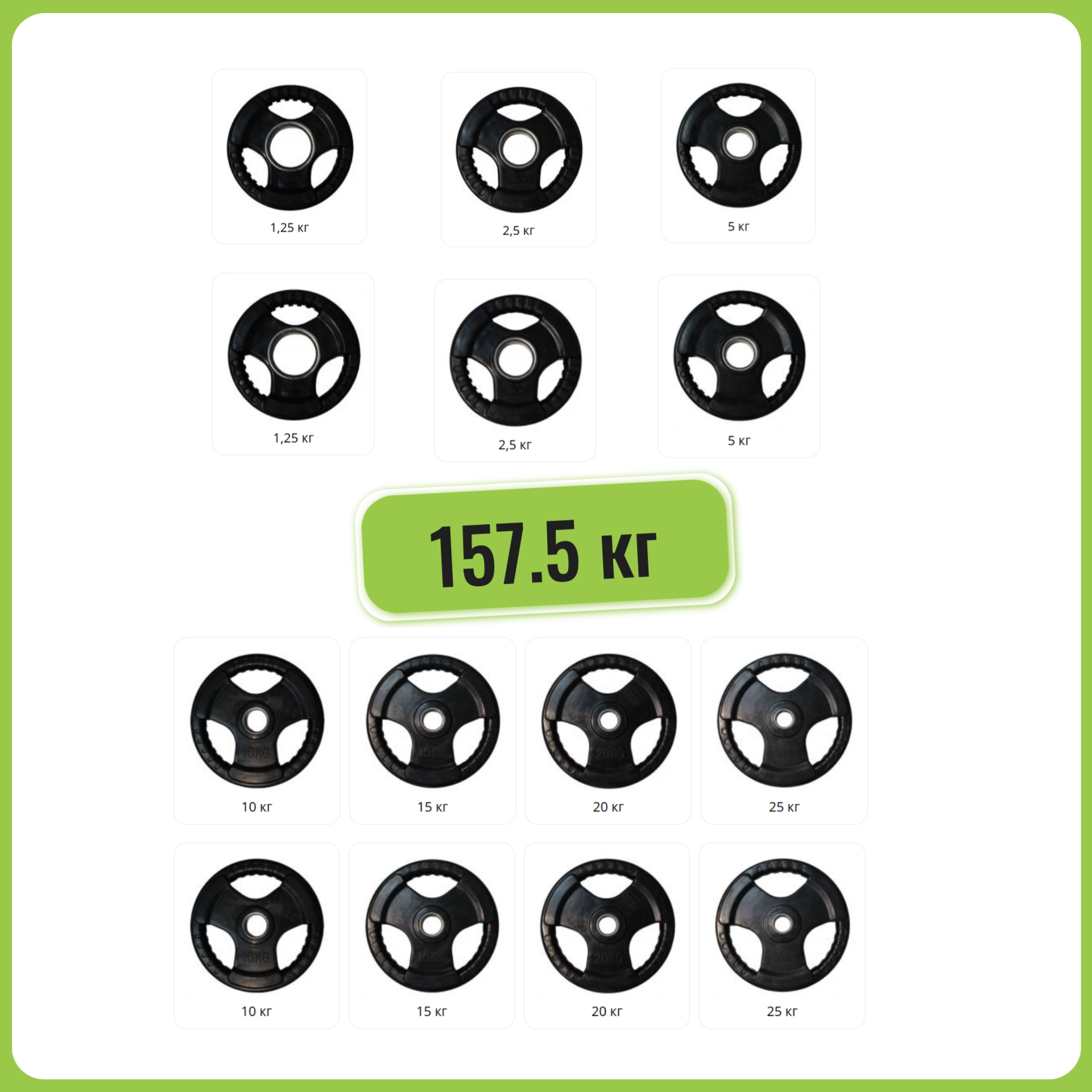 Комплект профессиональных обрезиненных дисков от 1.25 до 25 кг (7 пар), общий вес 157.5 кг
