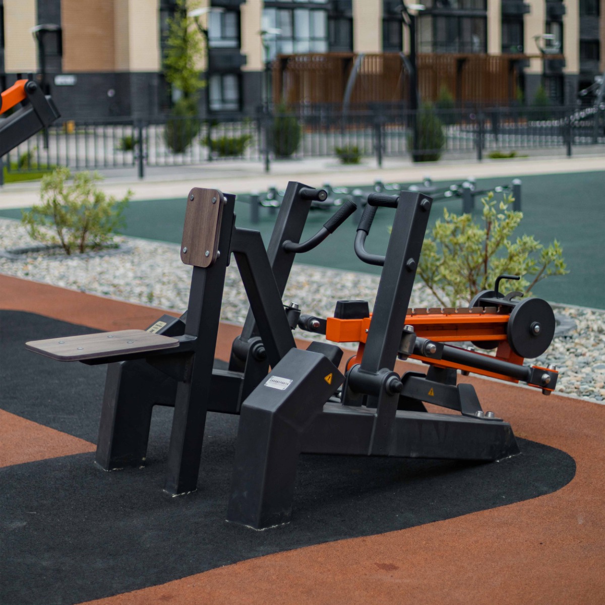 Сиденье 410×300 мм и спинка тренажера 250×190 мм с углом наклона 10° выполнены из высокопрочного ударостойкого HPL-пластика толщиной 12 мм.