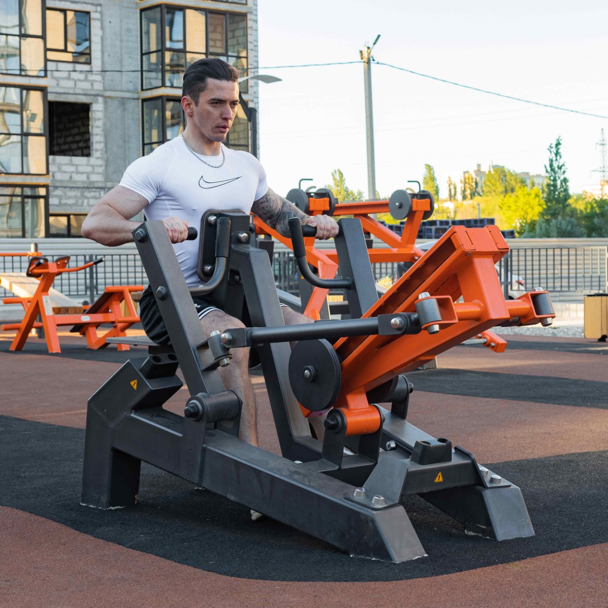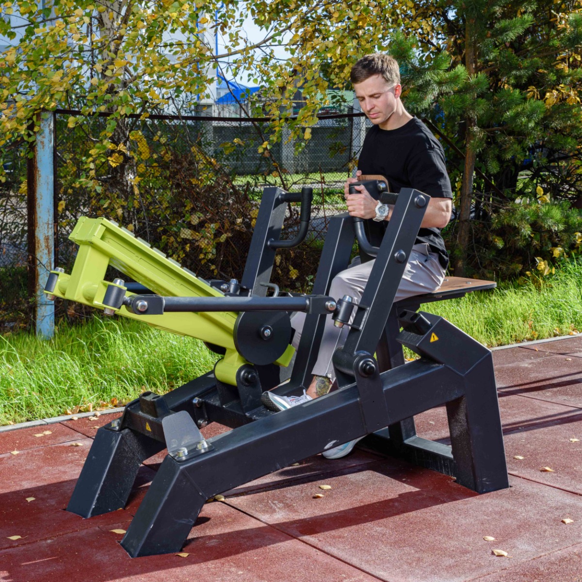 Стартовый вес на едином рычаге 30 кг с шагом 2 кг. Плавное ступенчатое увеличение нагрузки доступно в 10 положениях.