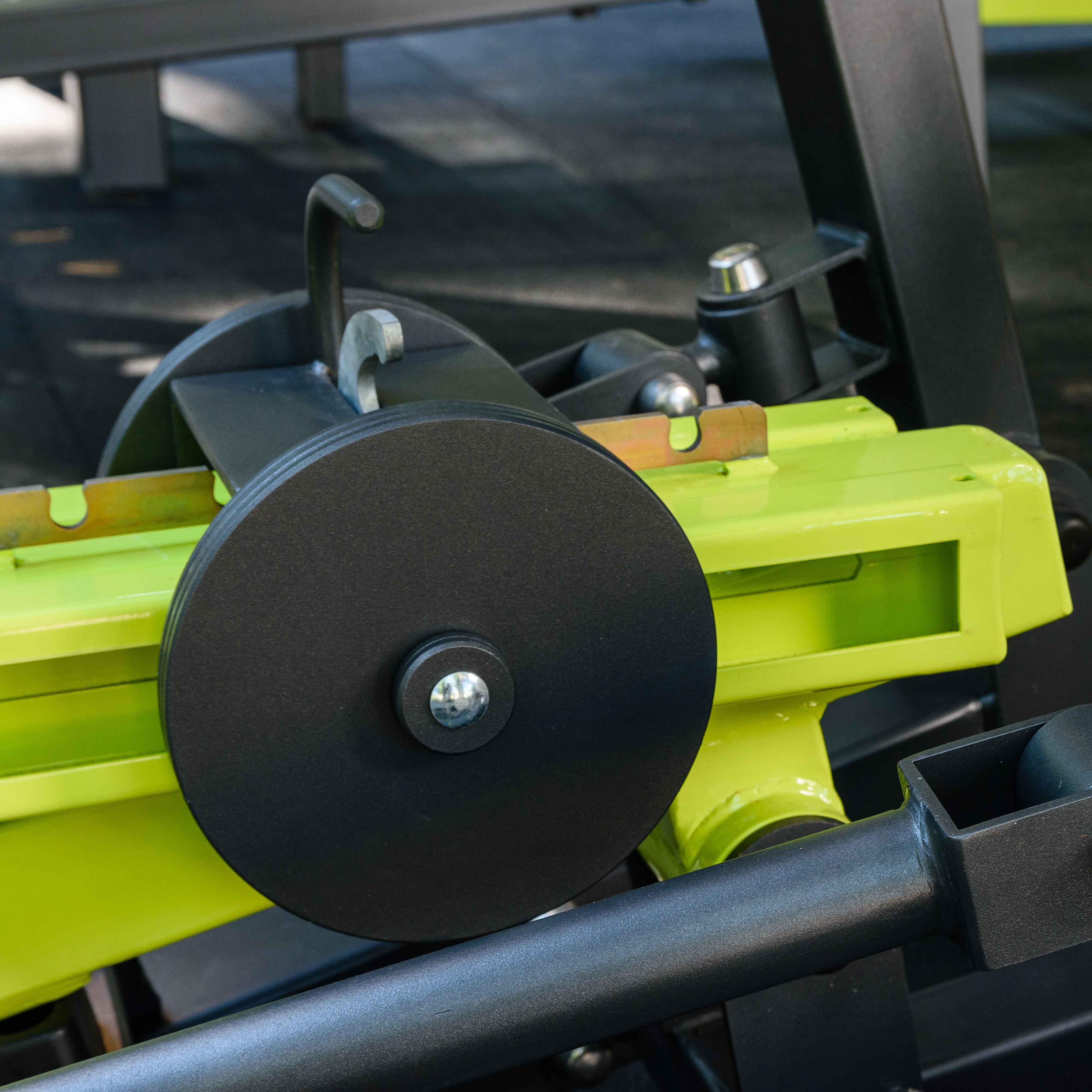 Подвижные рычаги оснащены передвижными грузовыми блоками из листового металла толщиной 8 мм, перемещающимися на роликах диаметром 75 мм с фиксацией по зубчатой рейке.