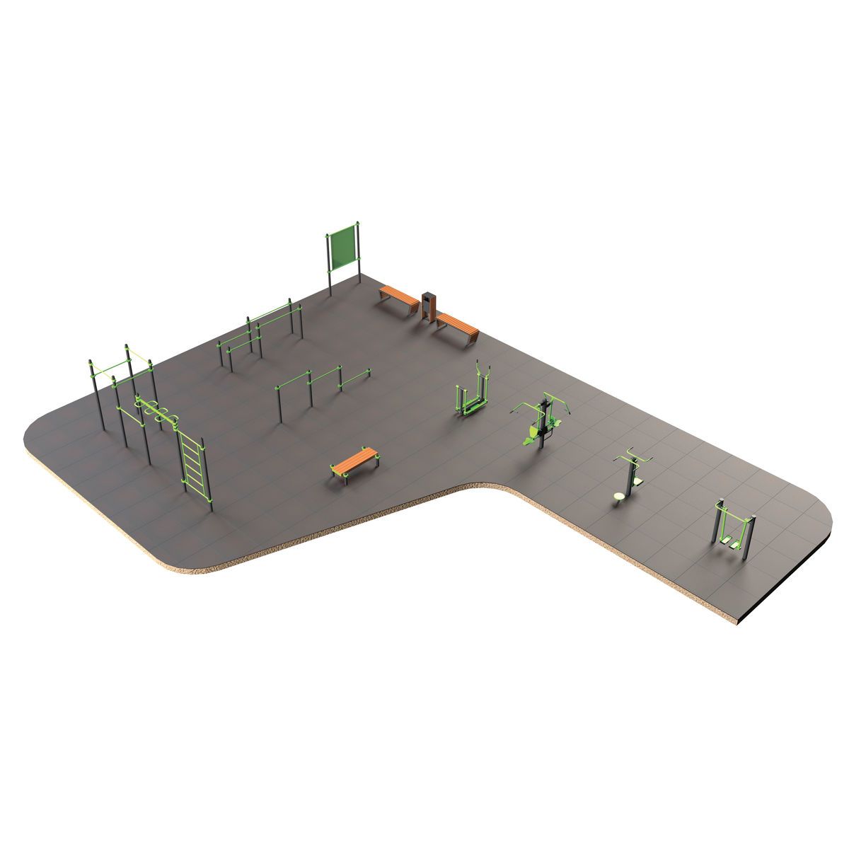Оборудование спортивной площадки S-1012 от ZAVODSPORTA* предназначено для комплексного оснащения уличной зоны тренировки. Конструкция спроектирована для круглогодичной эксплуатации в уличных условиях и обеспечивает надёжность при любых нагрузках.