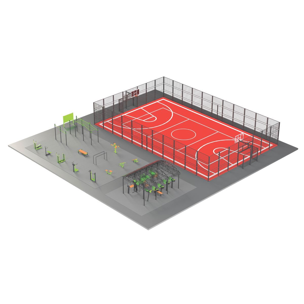 Оборудование спортивной площадки S-1019 от ZAVODSPORTA* предназначено для комплексного оснащения уличной зоны тренировки. Конструкция спроектирована для круглогодичной эксплуатации в уличных условиях и обеспечивает надёжность при любых нагрузках.