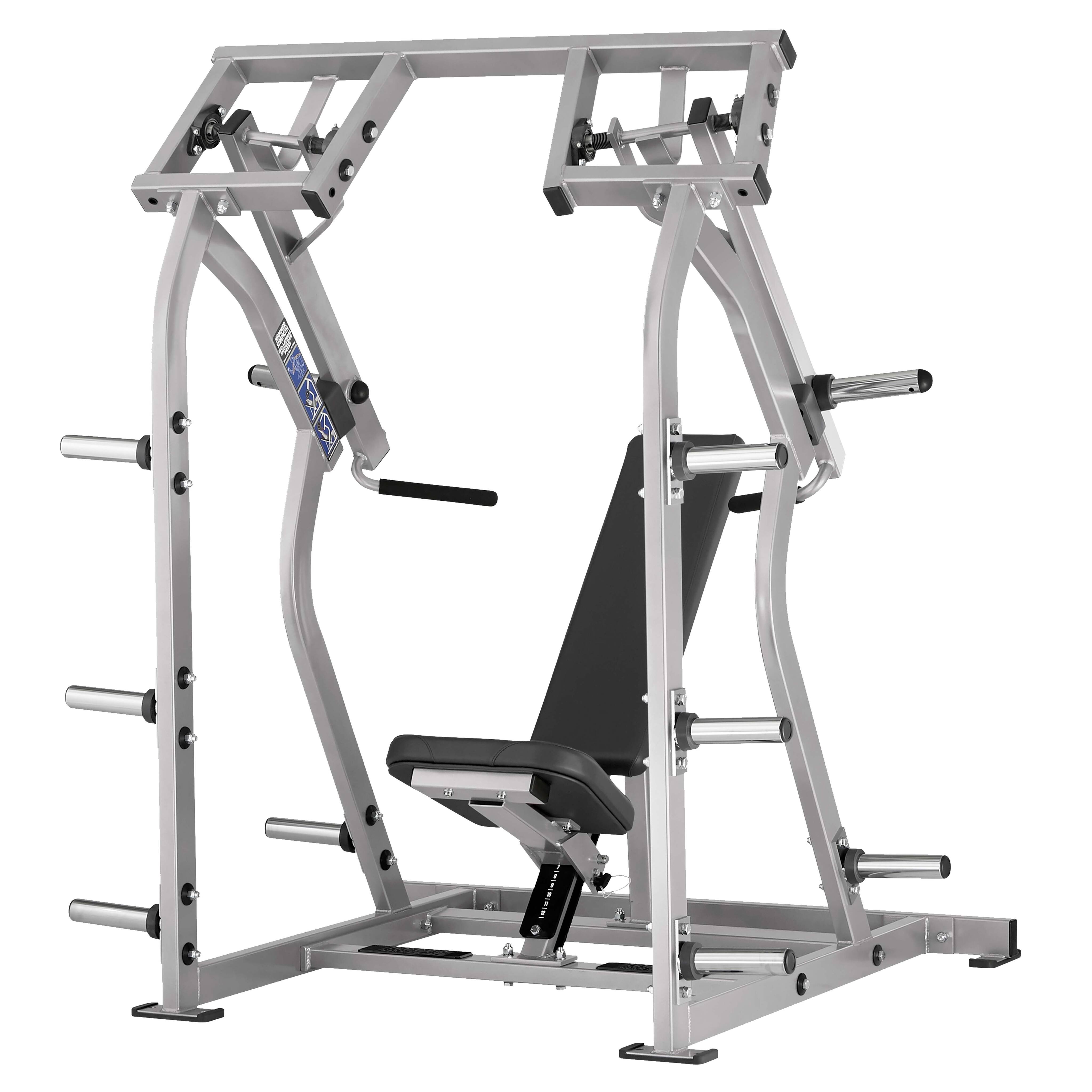 Два хромированных накопителя на подвижных рычагах оборудованы металлическими держателями для фиксации свободных весов. Стартовое сопротивление 8,2 кг на один рычаг. На торцах накопителей установлены заглушки из пластика.